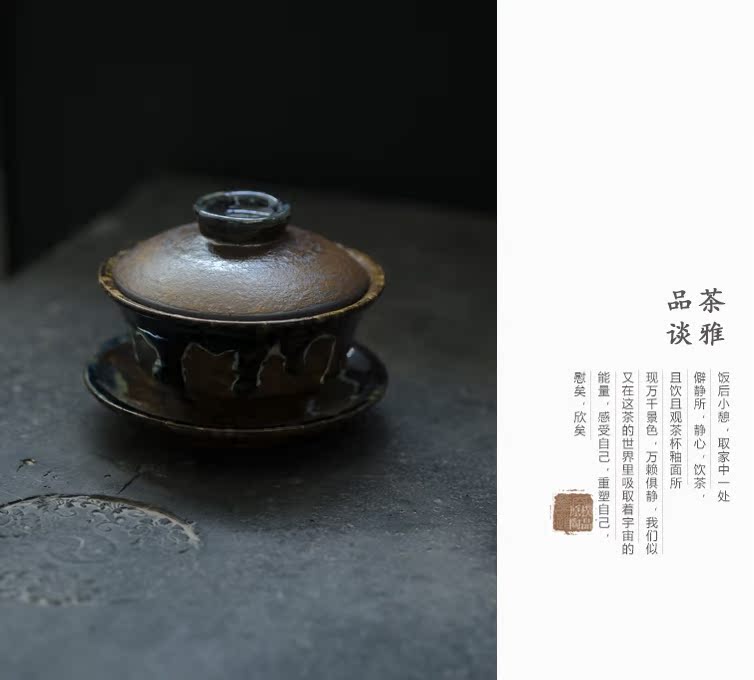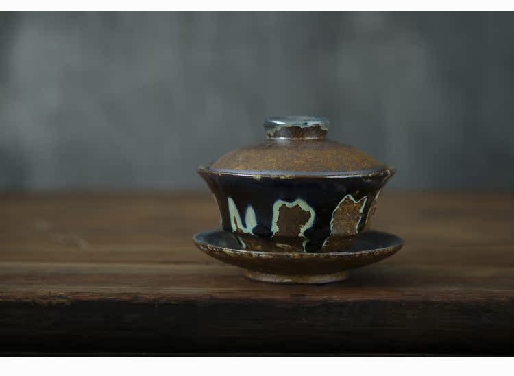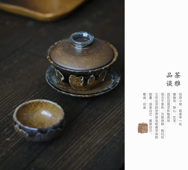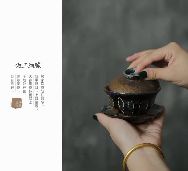 [2]日式釉水仿柴燒三才蓋碗窯變紫砂大號泡茶碗茶杯功夫茶具餐具1入