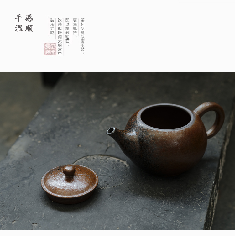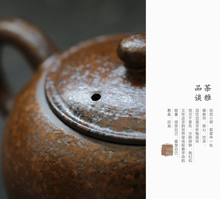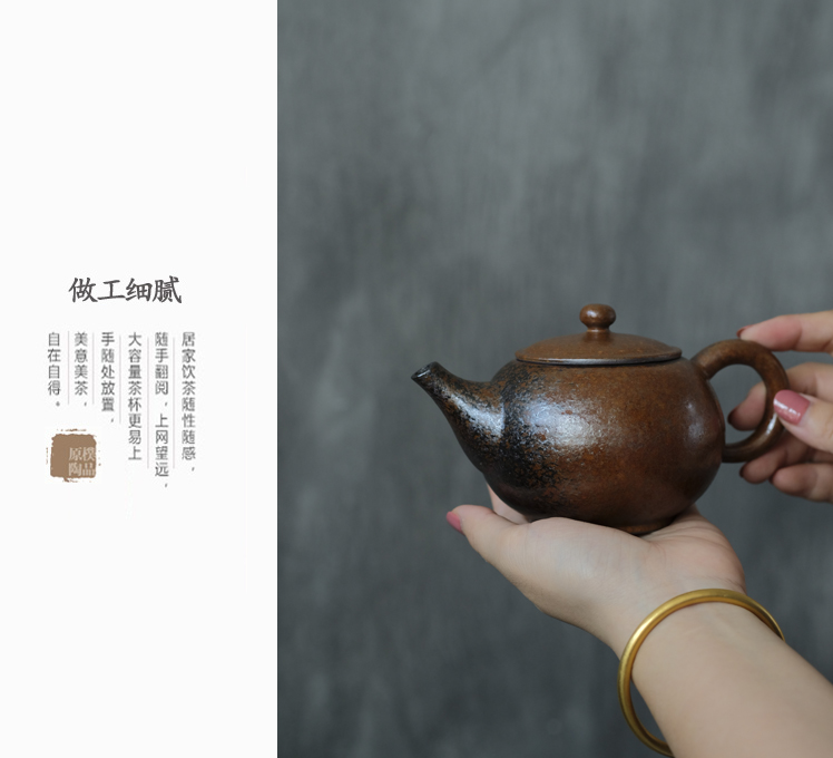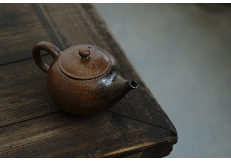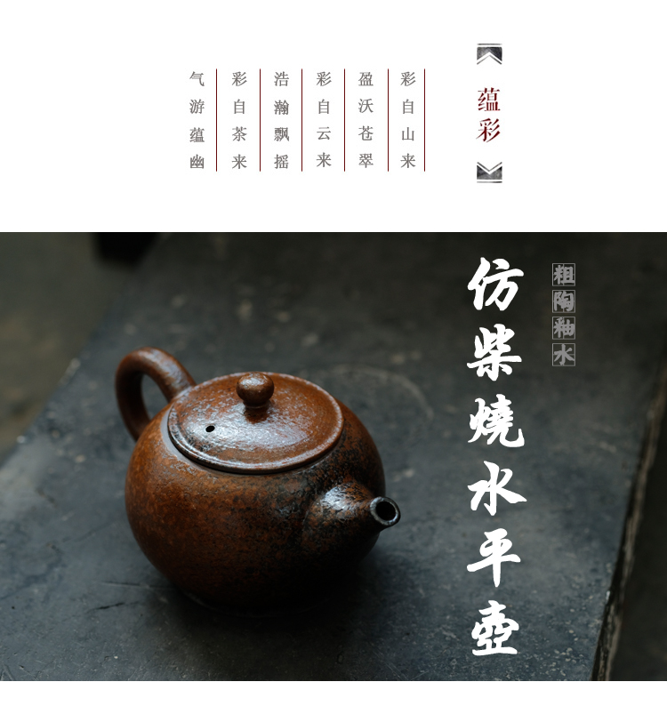 釉水仿柴燒窯變落灰手把單壺泡茶壺紫砂壺茶器具大容量水平壺1入