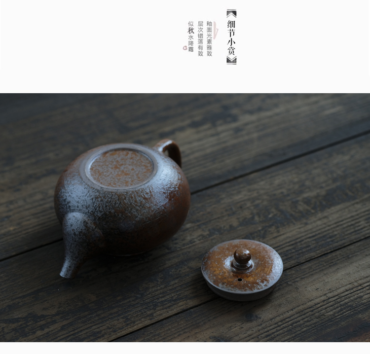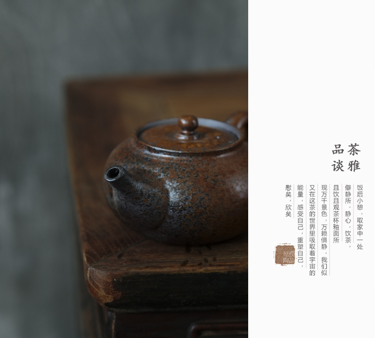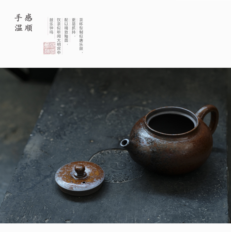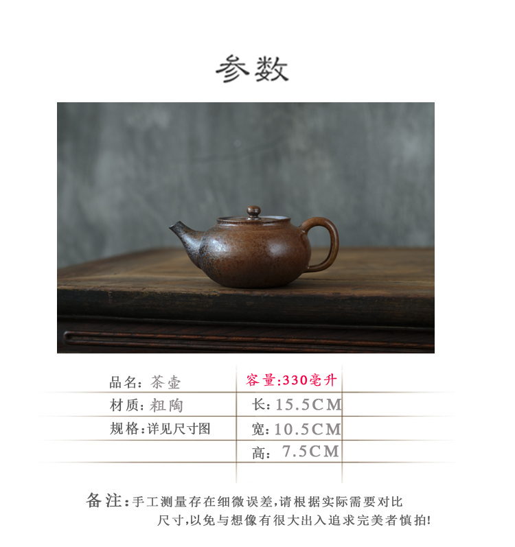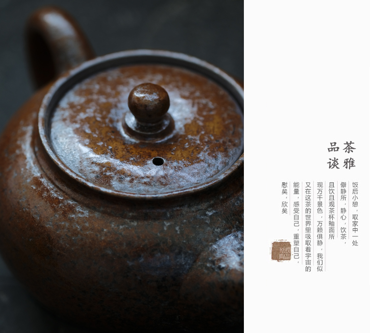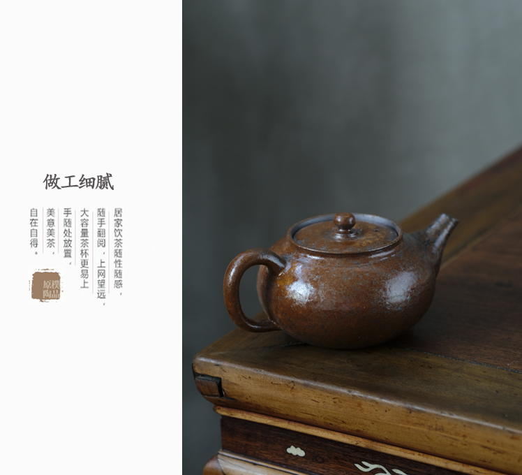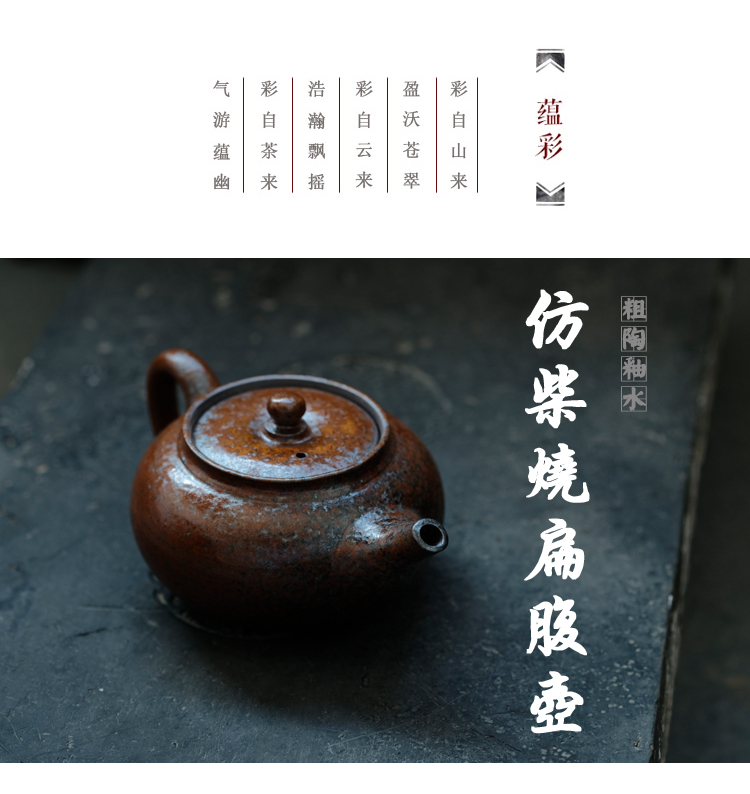釉水仿柴燒窯變落灰手把單壺泡茶壺紫砂壺茶器具大容量扁腹壺1入