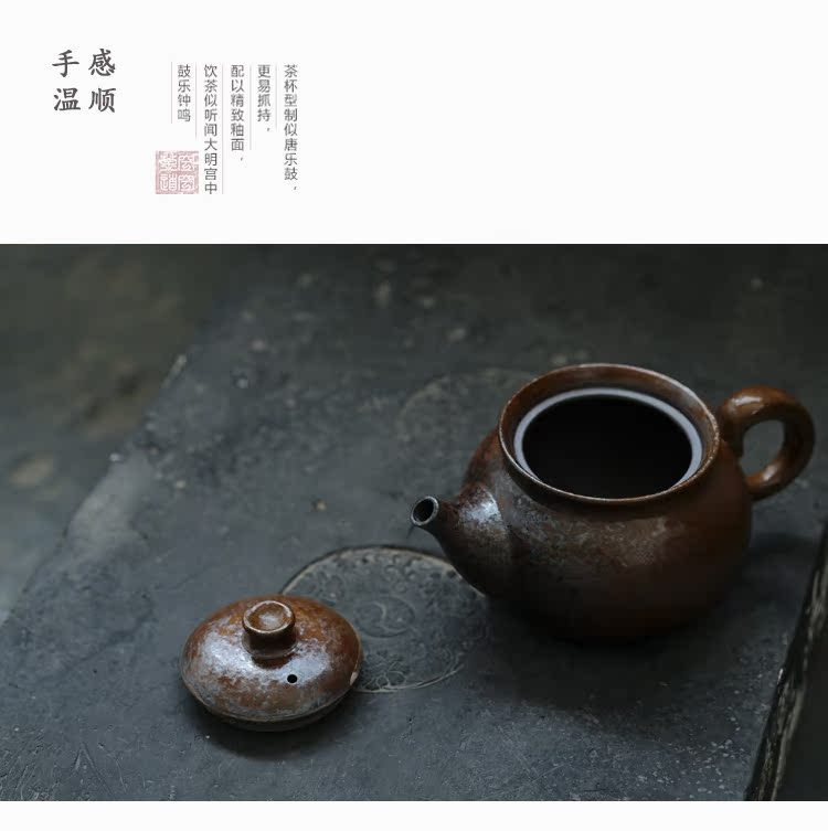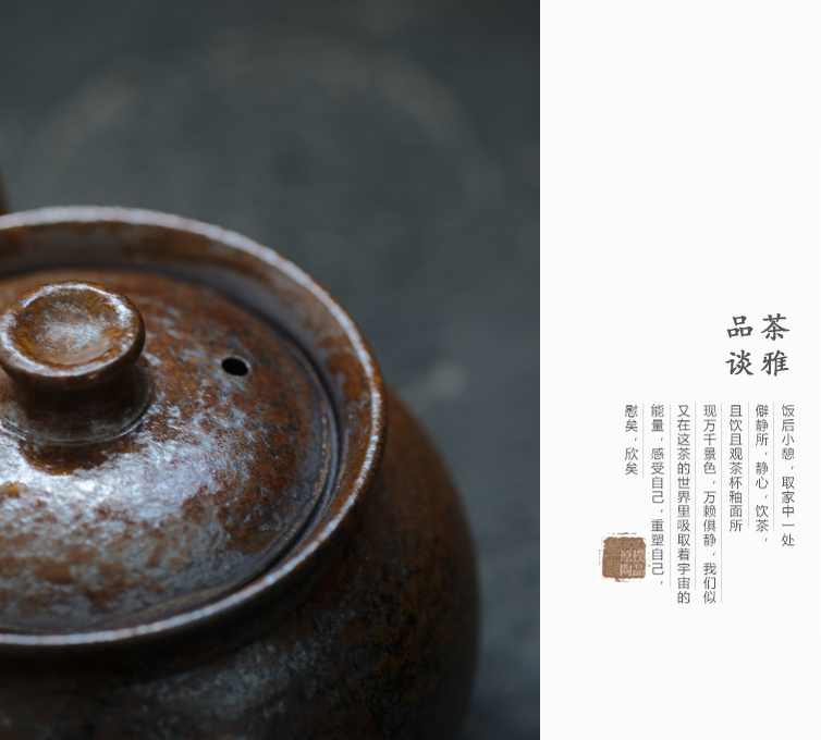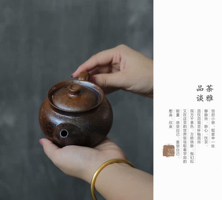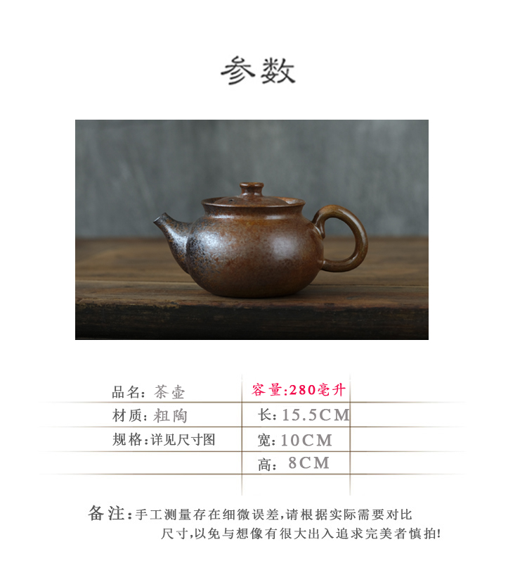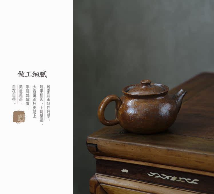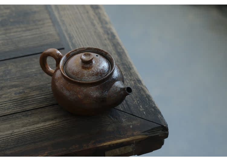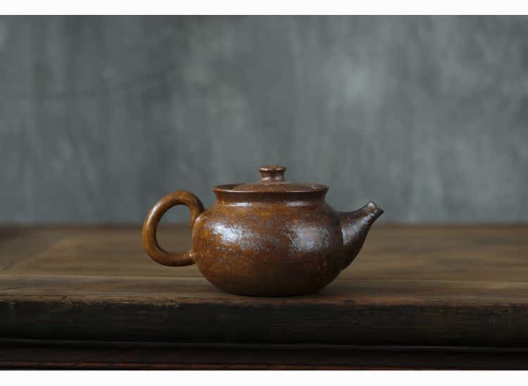 釉水仿柴燒窯變落灰手把單壺泡茶壺紫砂壺茶器具大容量圓帽壺1入