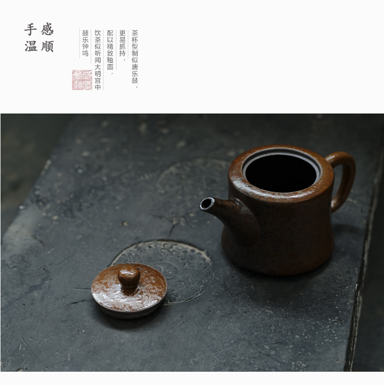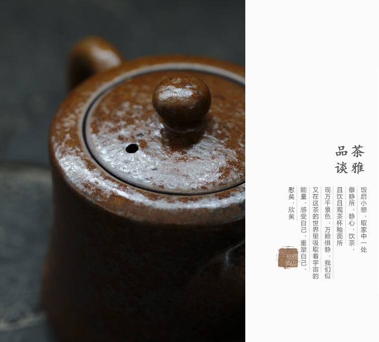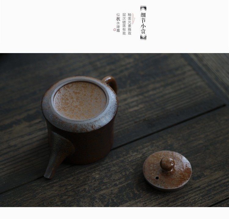 釉水仿柴燒窯變落灰手把單壺泡茶壺紫砂壺茶器具大容量柱礎壺1入