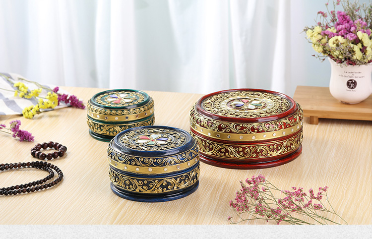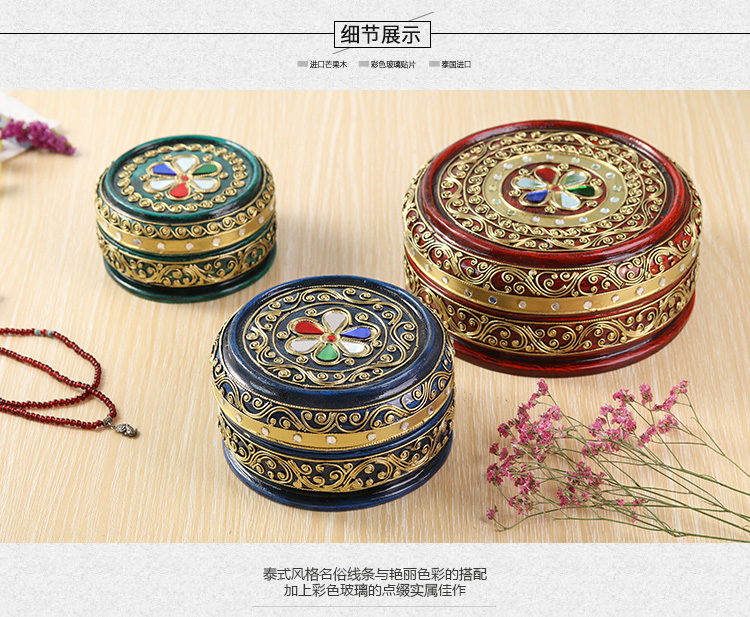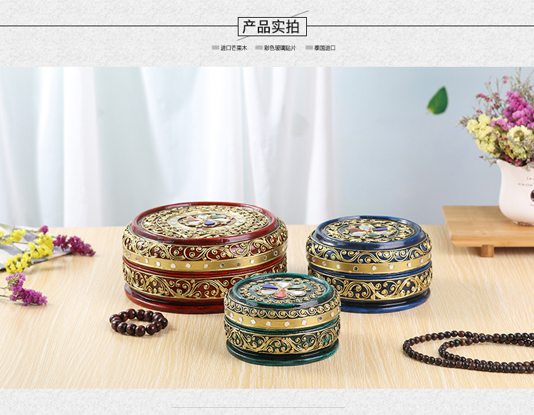 首飾盒 創意家居實木復古收納盒東南亞風儲物盒拍攝道具1入
