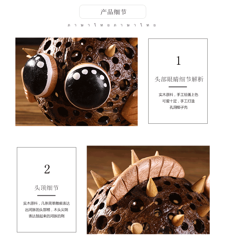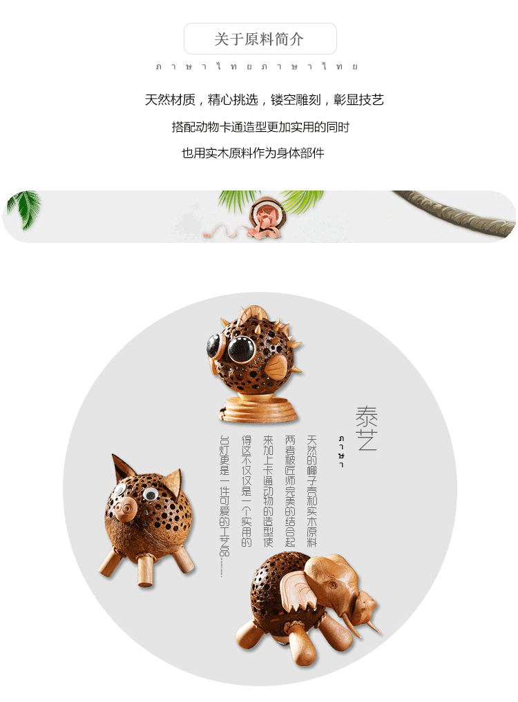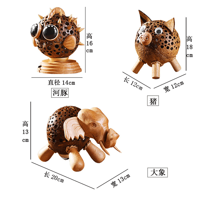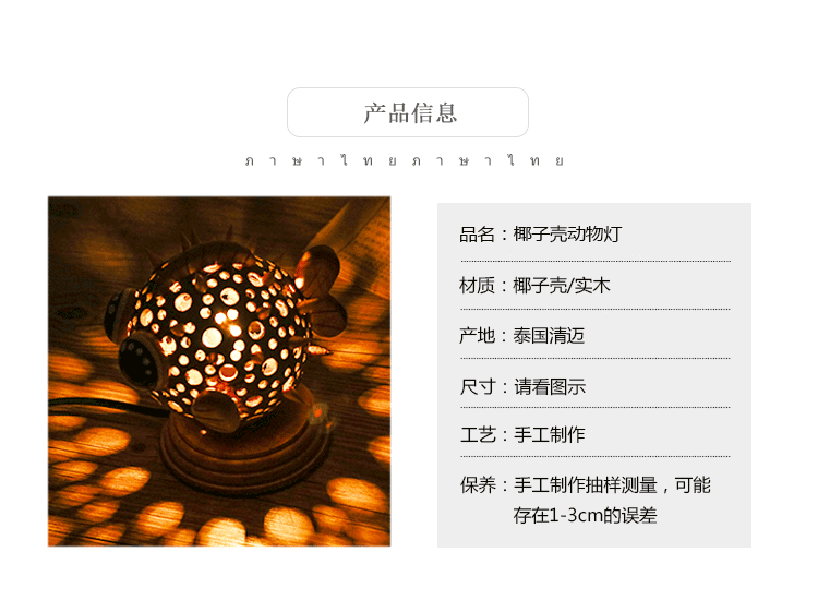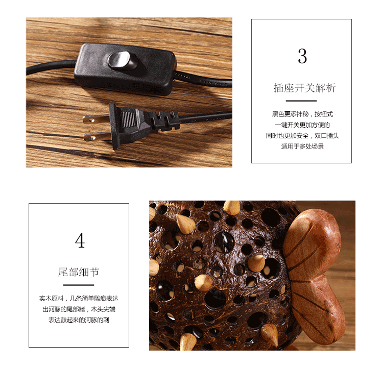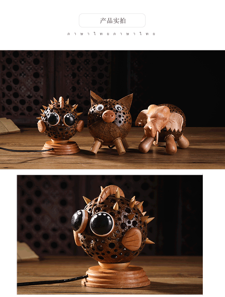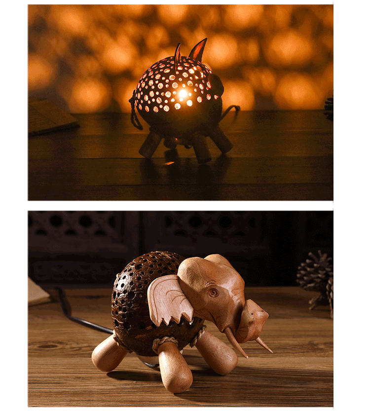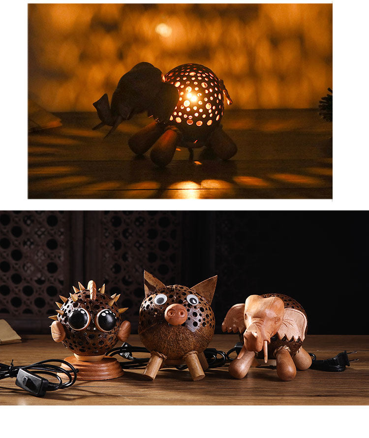 椰子燈椰殼燈特色小夜燈柔光可愛動物玩具燈手工藝品擺件1入