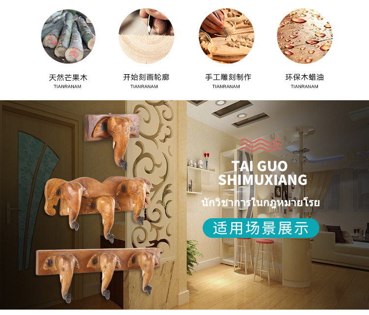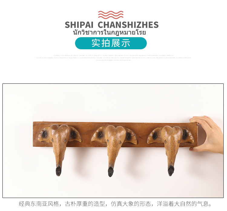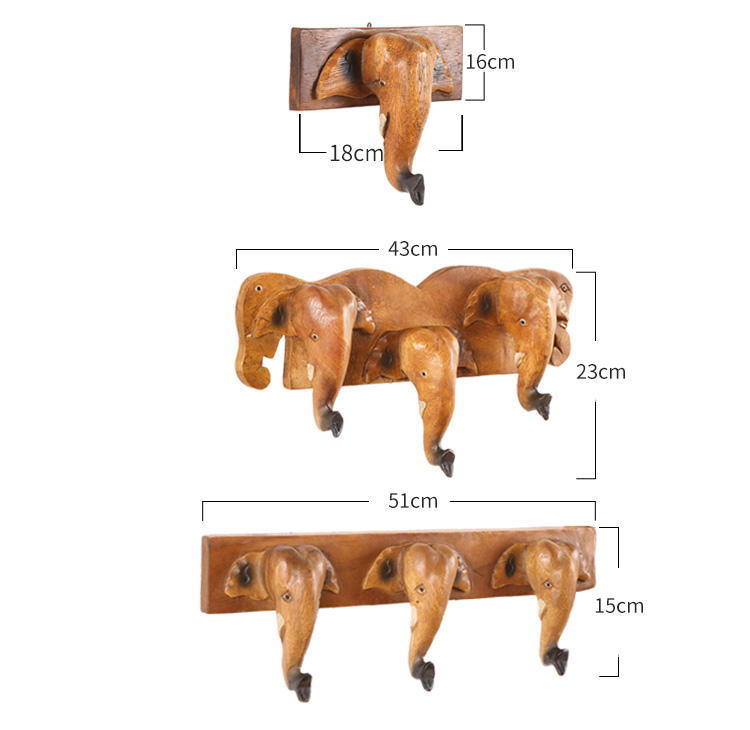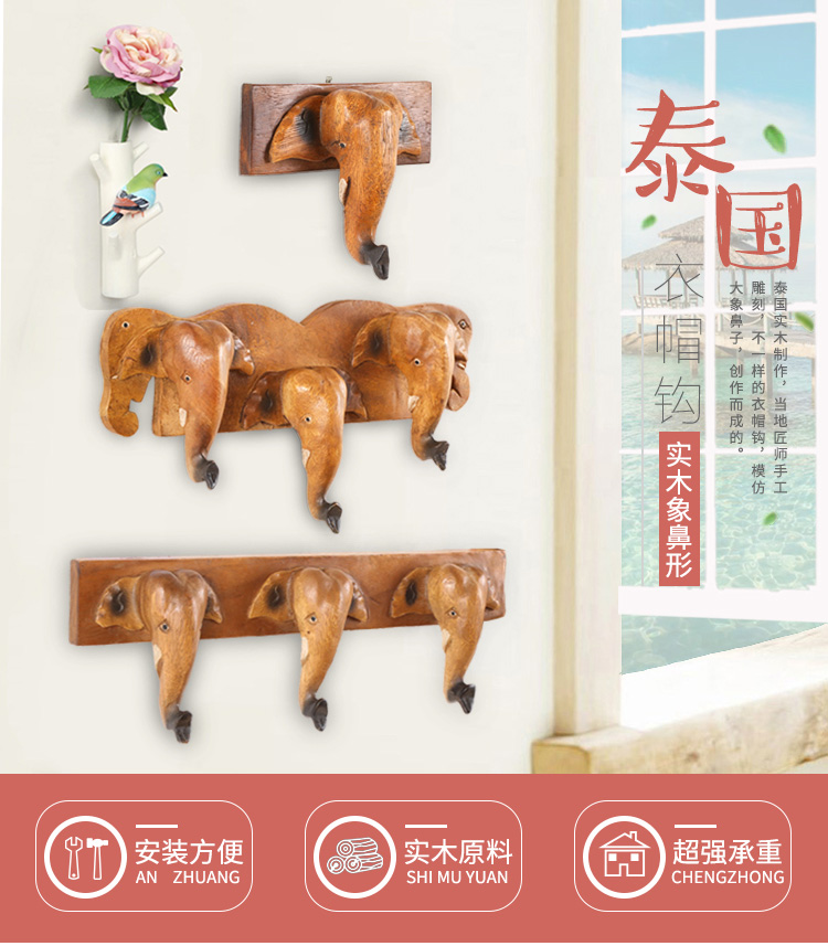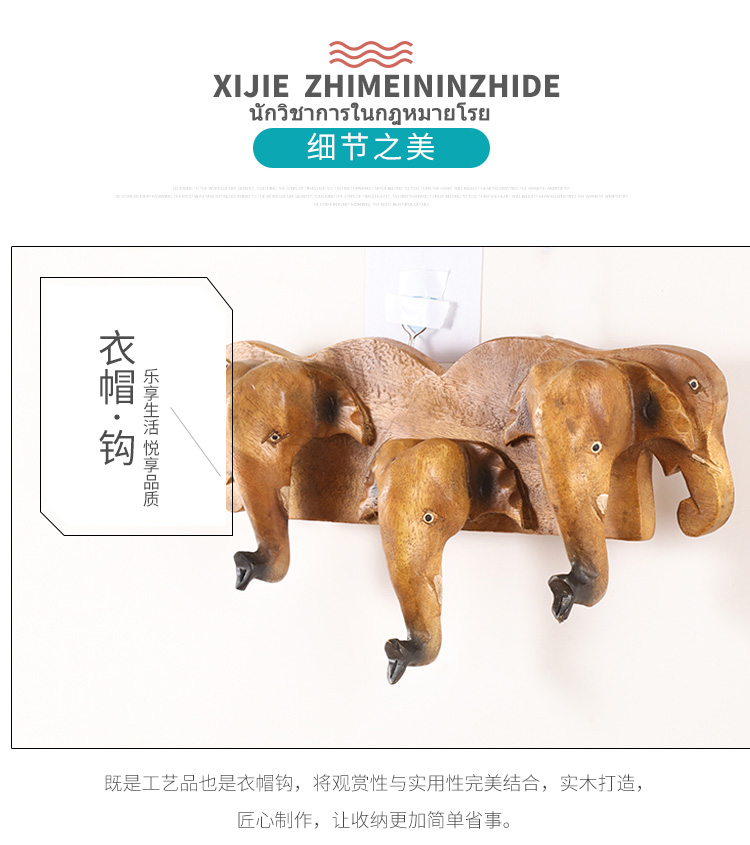 實木衣帽鉤墻壁掛創意個性客廳大象裝飾木質衣柜掛鉤熱賣1入