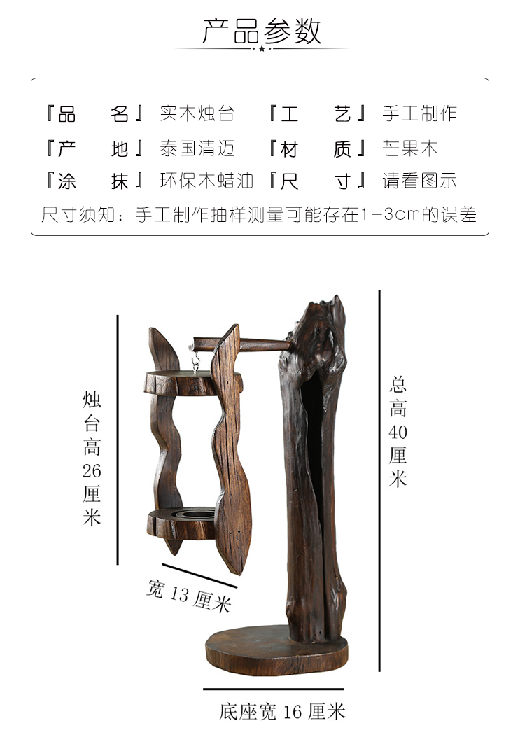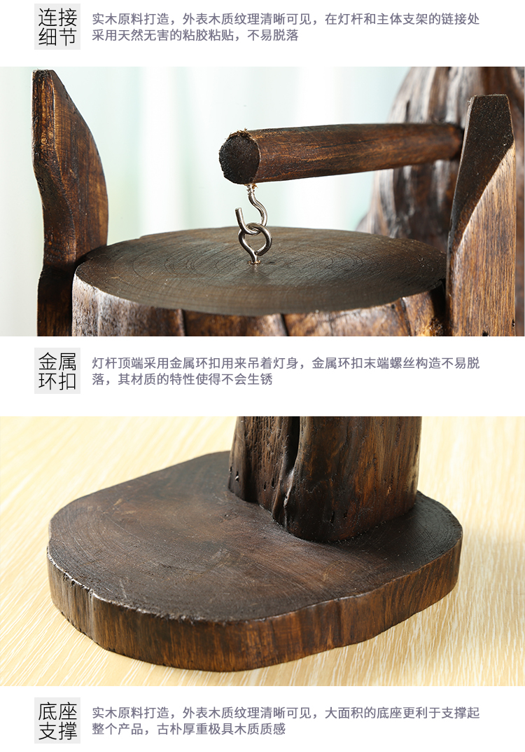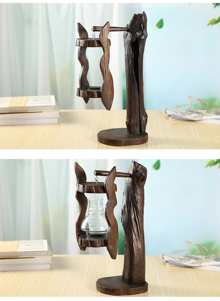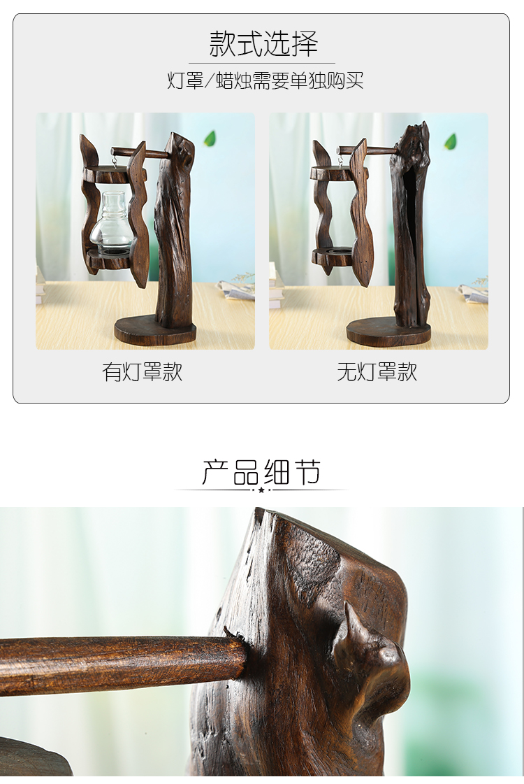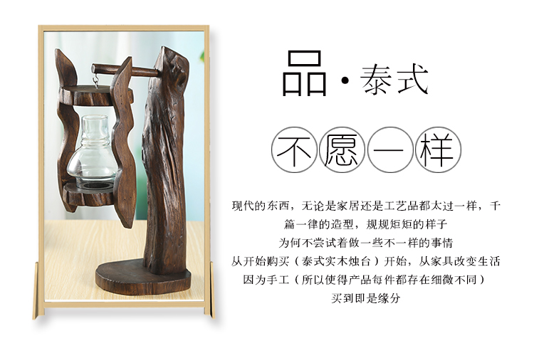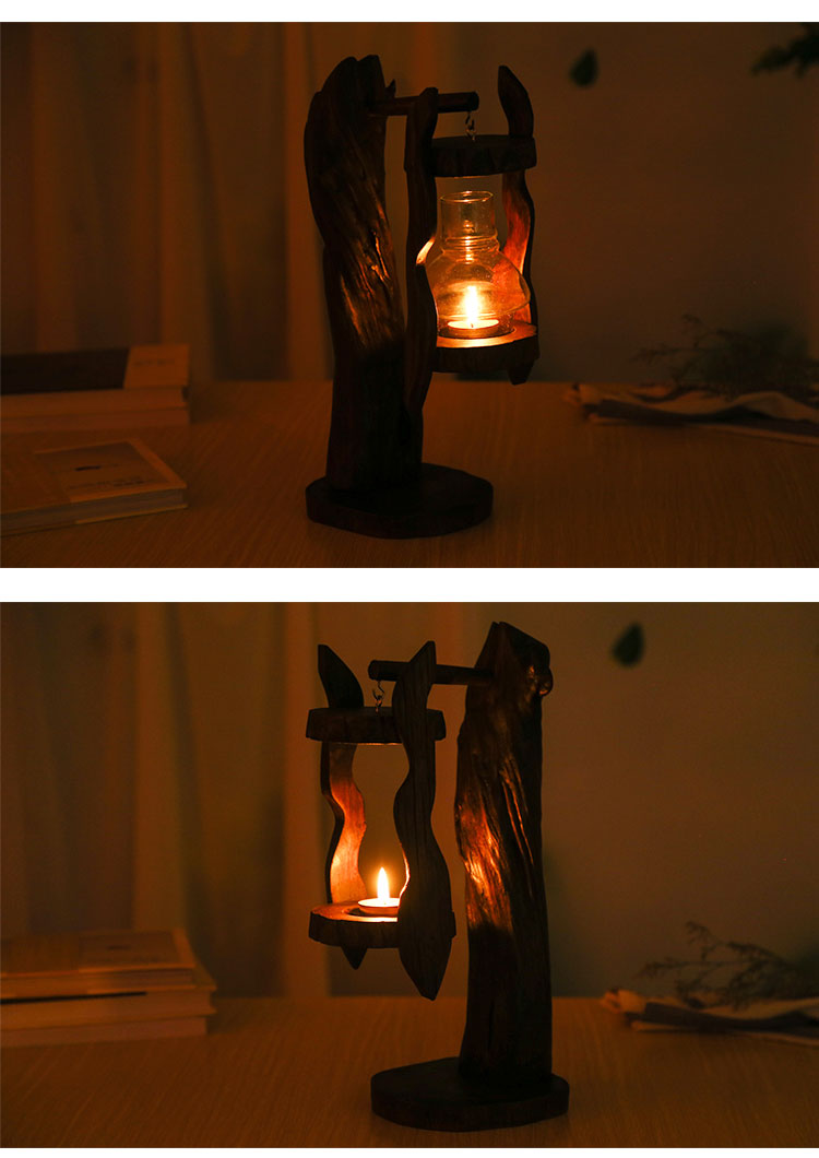 原木異形創意燭臺風燈復古東南亞玻璃罩燭臺戶外防風馬燈擺件1入