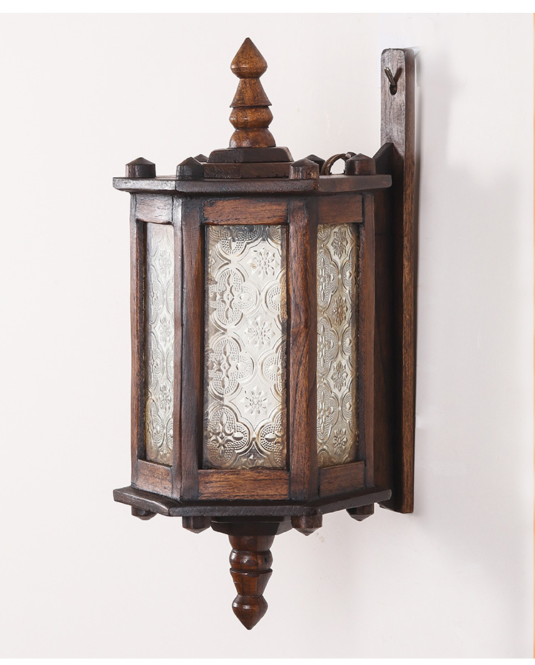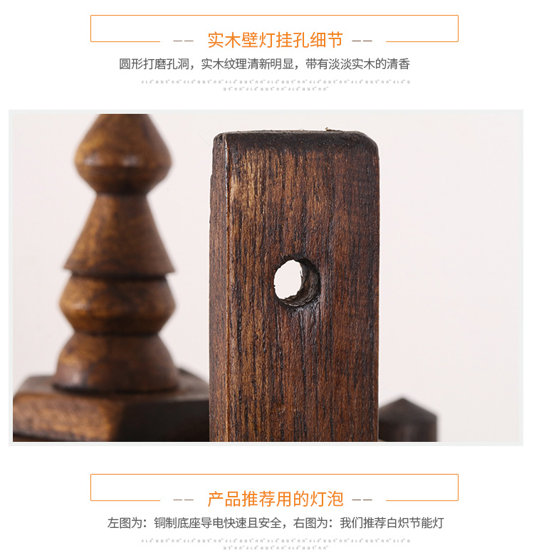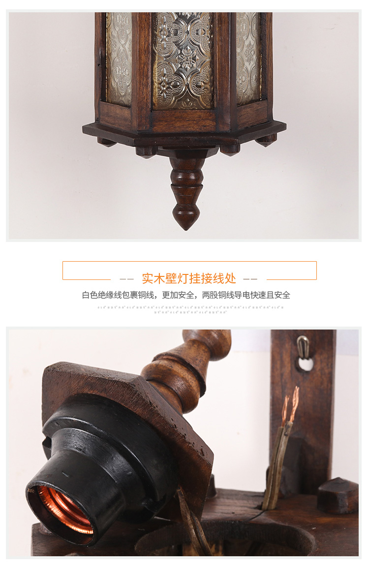 實木壁燈泰式風新中式臥室床頭燈具過道走廊樓梯復古仿古客廳墻燈1入