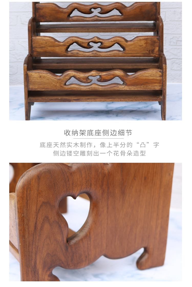 實木置物架客廳桌面古收納架廚房浴室整理架臥室化妝品收納盒1入