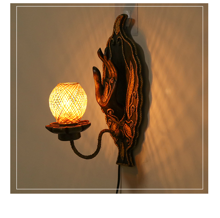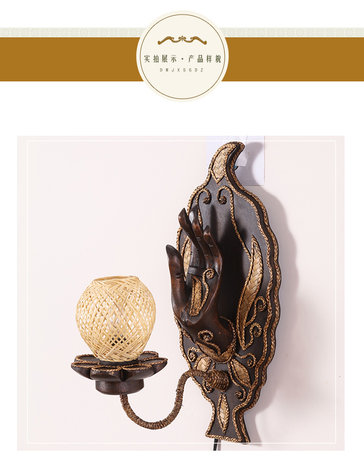 墻上裝飾品創意泰式佛手臥室床頭客廳壁燈現代簡約東南亞風格1入
