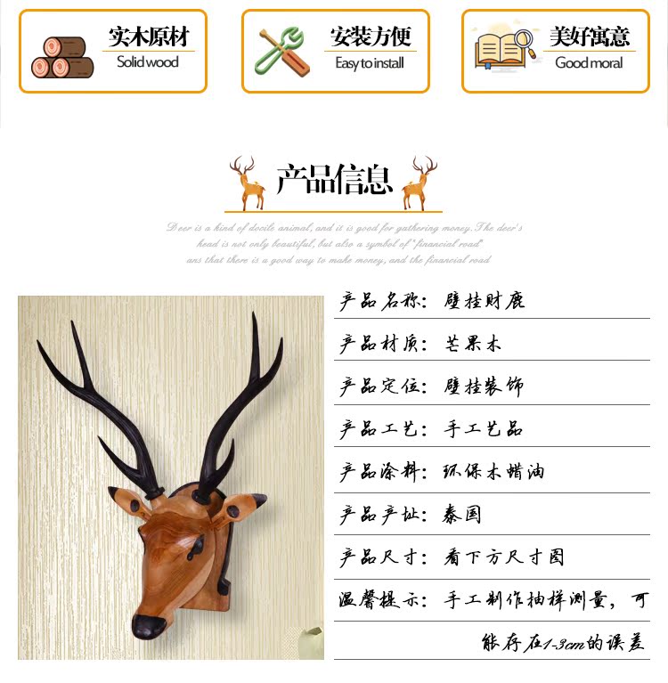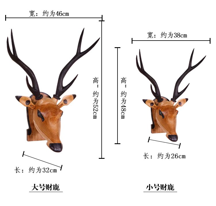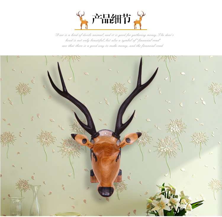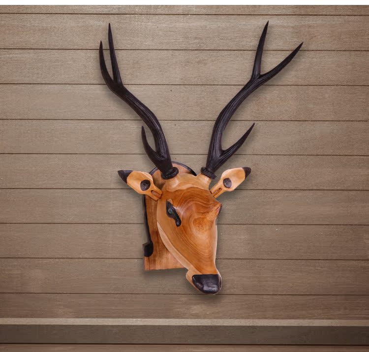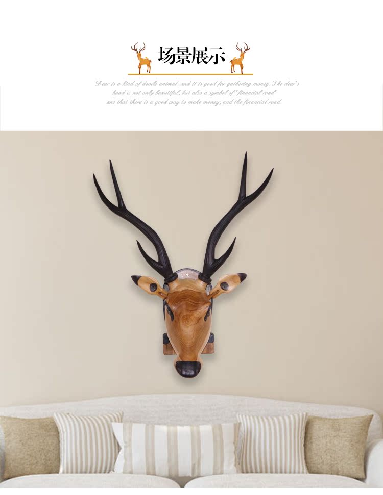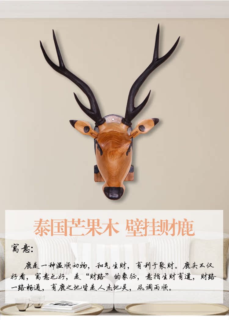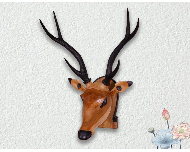 實木仿真泰式鹿頭裝飾壁掛創意掛件客廳玄關招財鹿墻面墻上裝飾品1入