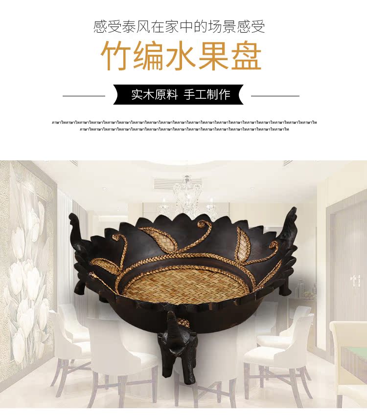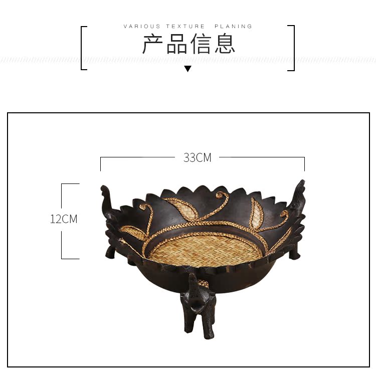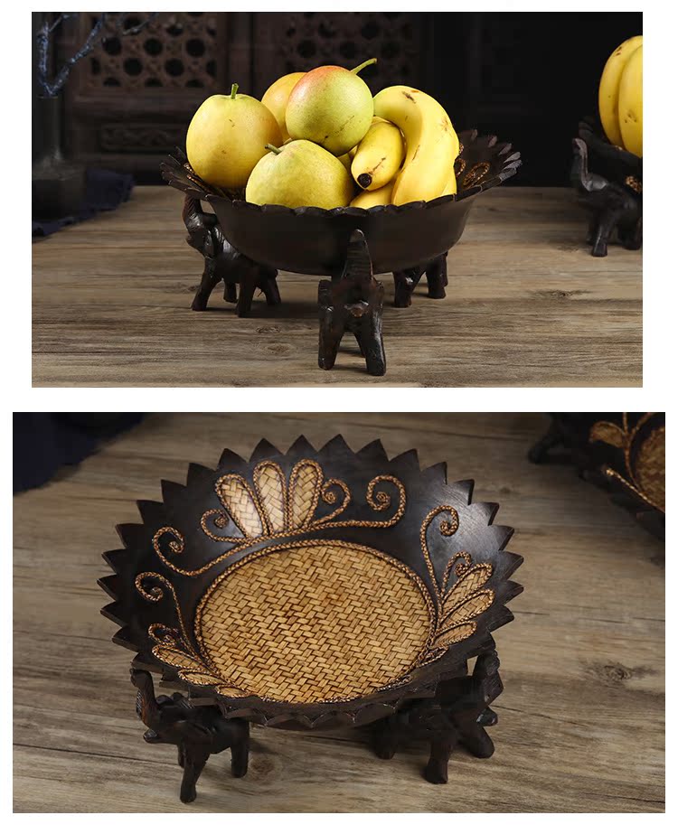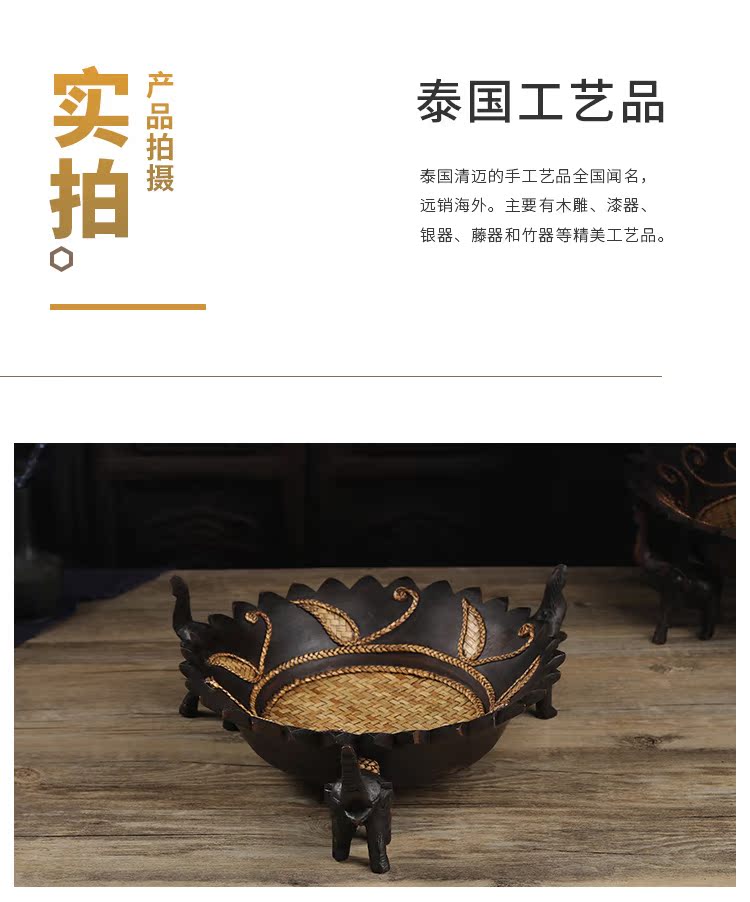 果盤東南亞實木客廳擺件柚木果盤水果盤木雕大象果盤木質1入