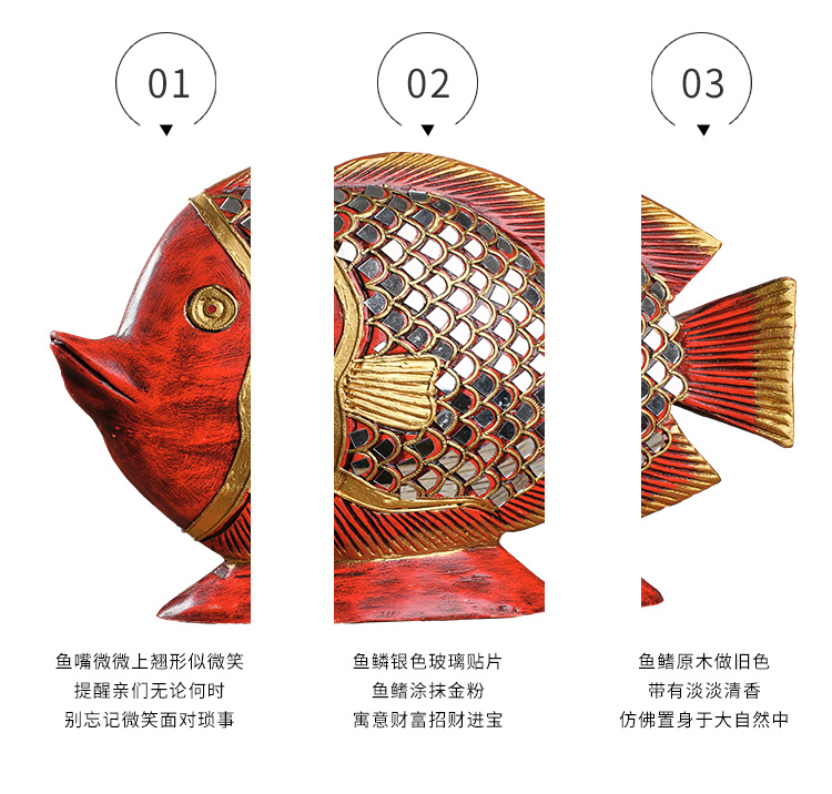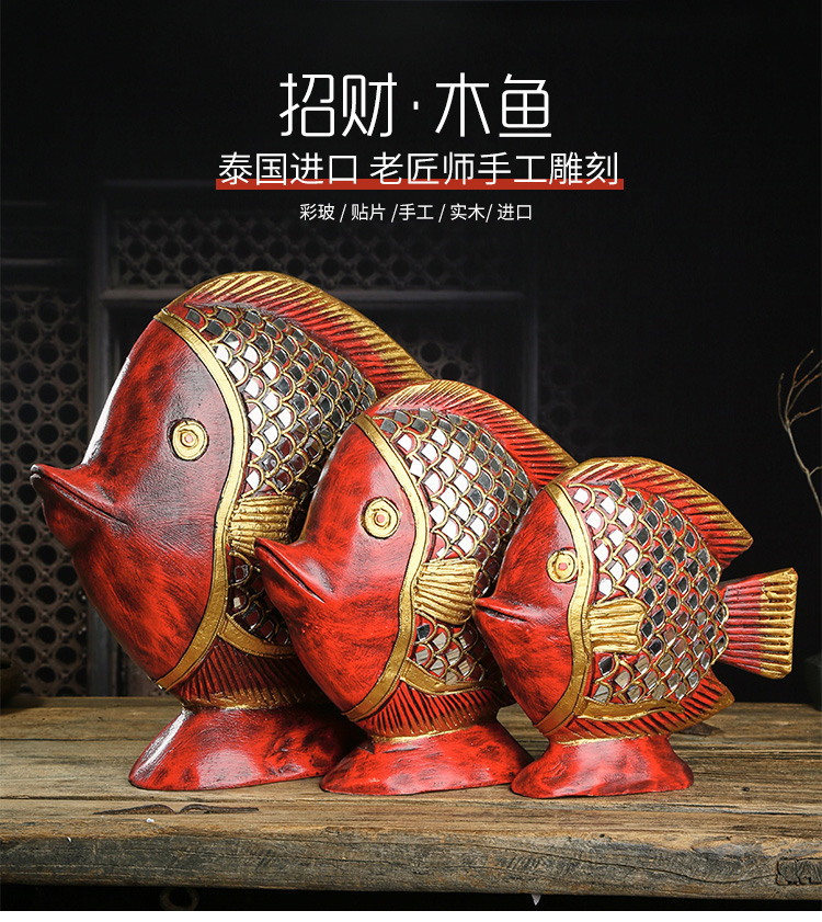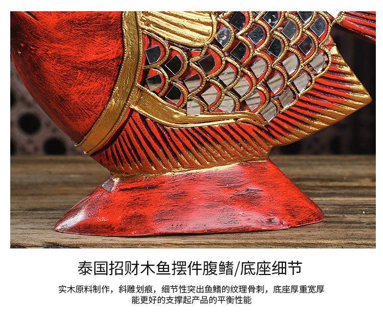 東南亞木雕工藝品紅色鯉魚擺件客廳年年有余富貴軟裝飾品1入