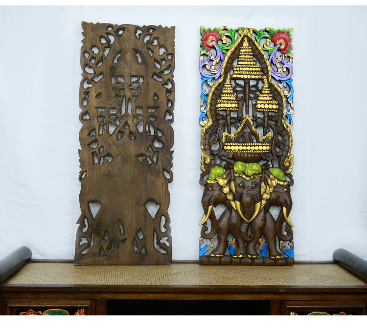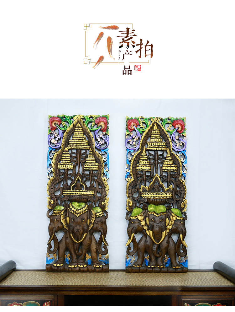 工藝實木雕刻裝飾掛板客廳隔斷鏤空大象雕板玄關墻壁裝飾畫1入