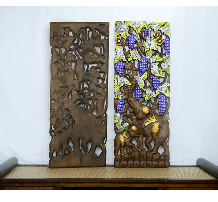 大象實木鏤空木雕壁掛雕板玄關客廳掛件 木雕掛件鏤空長方形1入
