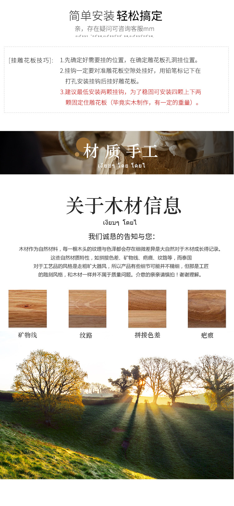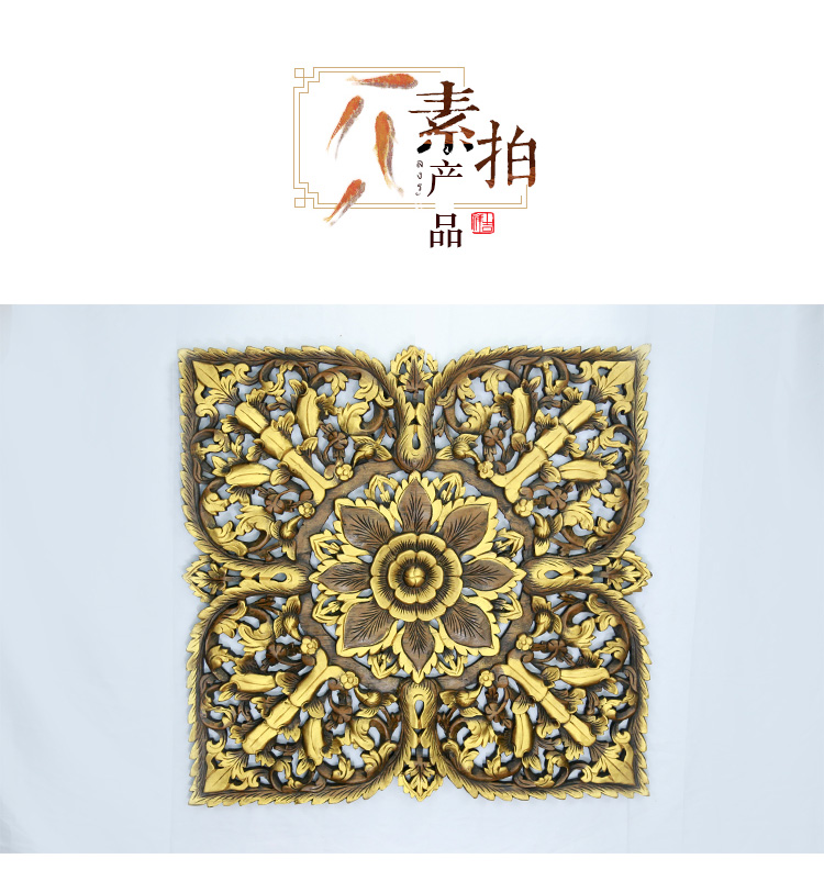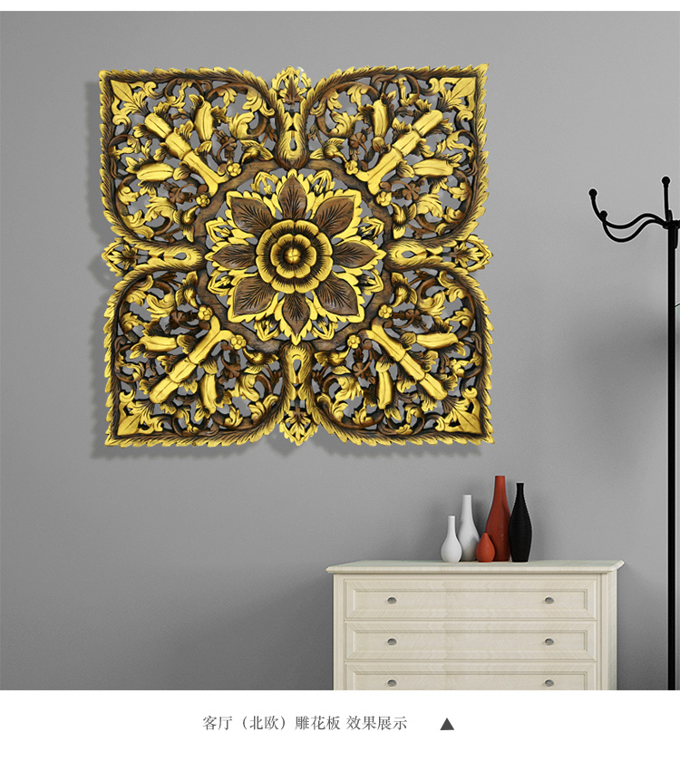 純手工柚木花卉雕花板東南亞風格客廳玄關電視背景墻裝飾掛件1入