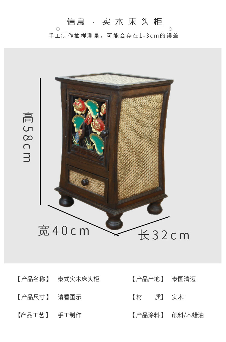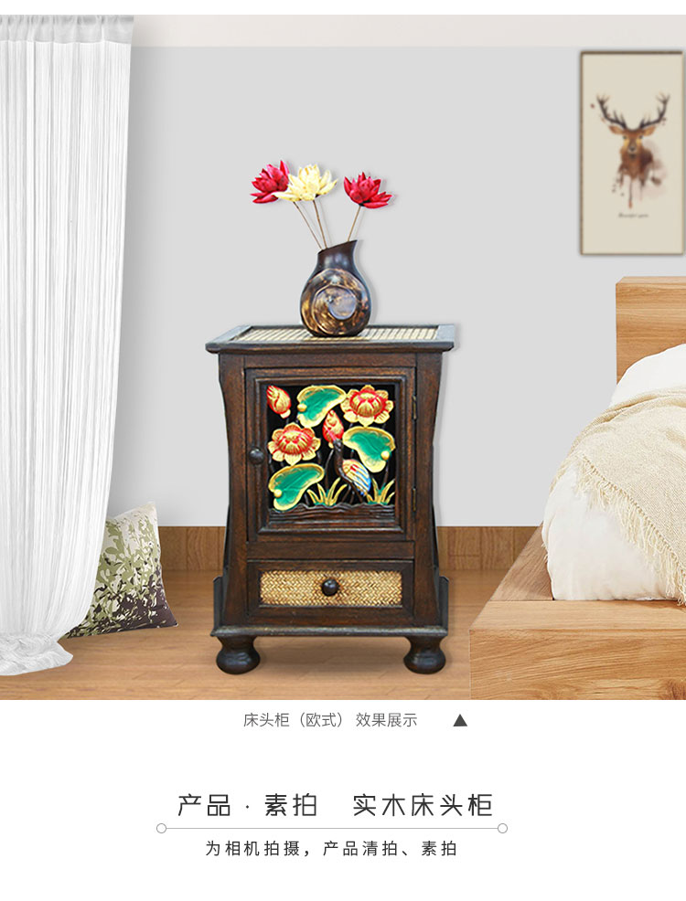 實木柜子 東南亞風格雕花酒店賓館臥室床頭柜客廳沙發電話柜1入