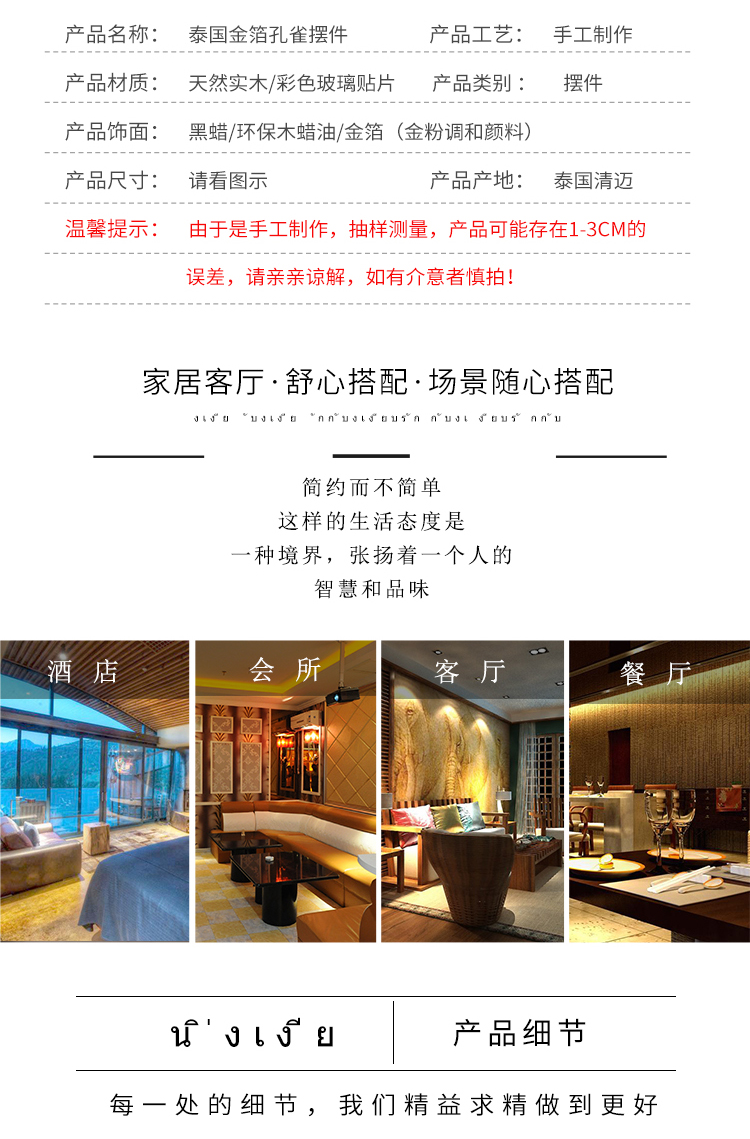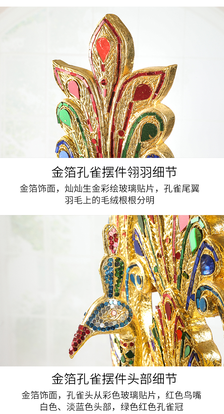 木雕工藝品東南亞風格金色孔雀擺件酒店會所客廳裝飾品特惠1入