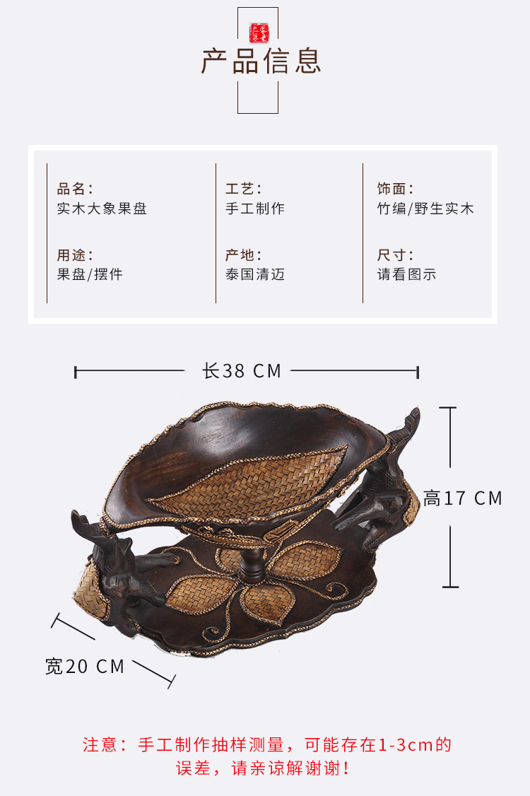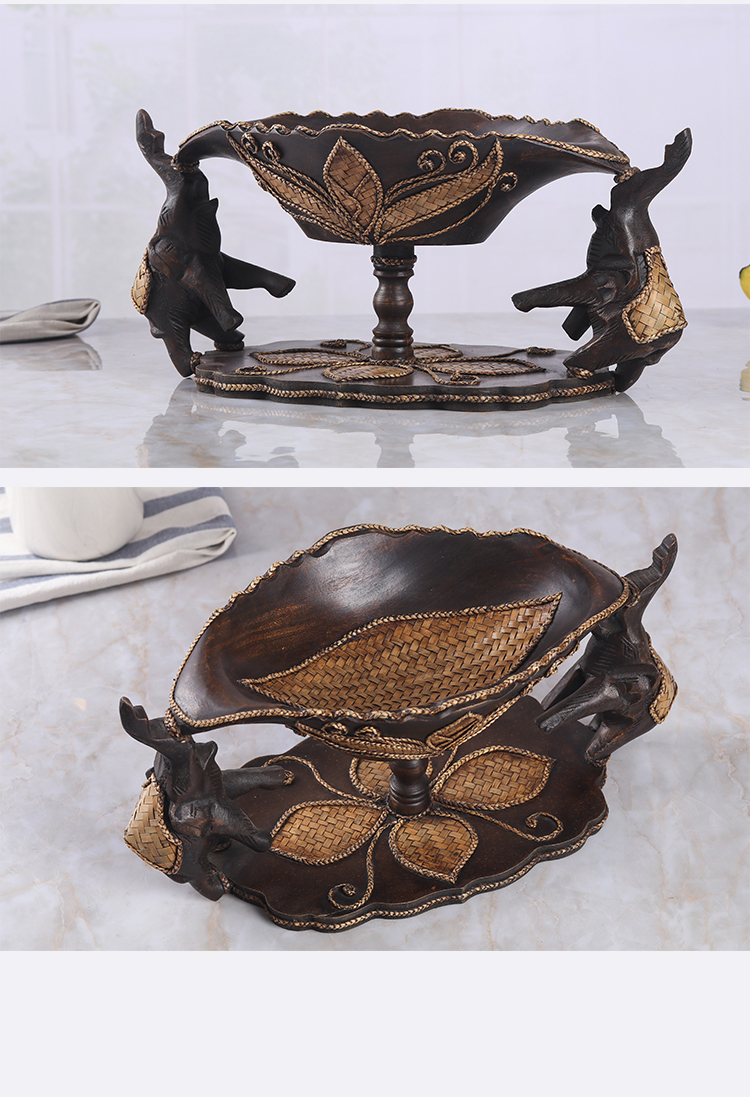大象果盤創意客廳實木水果盤復古擺件家居裝飾品茶幾干果盤1入