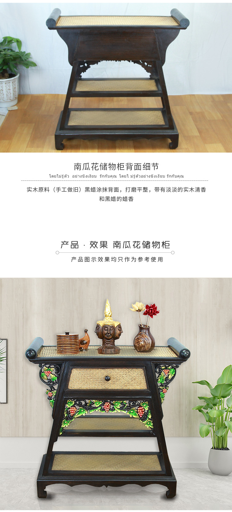 木雕柜子東南亞特色裝飾柜藤木竹編雕花實木客廳門廳玄關柜1入