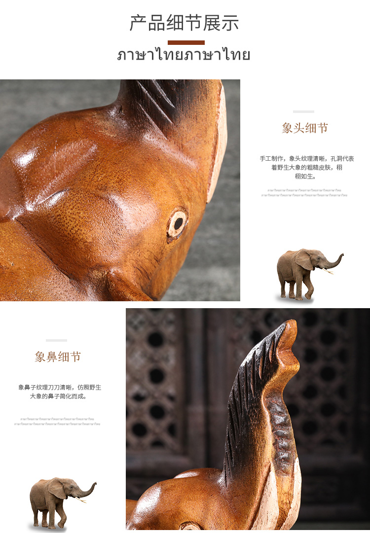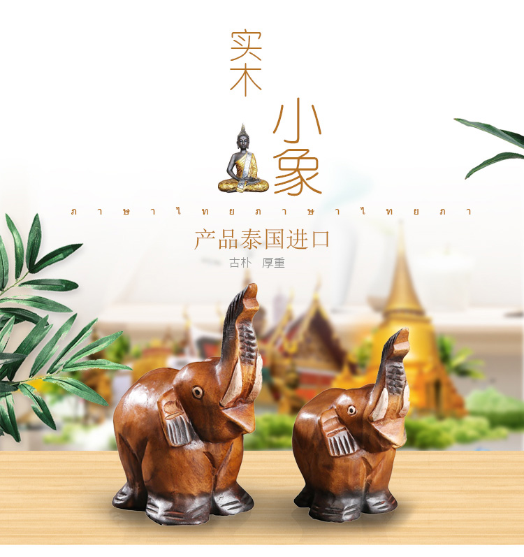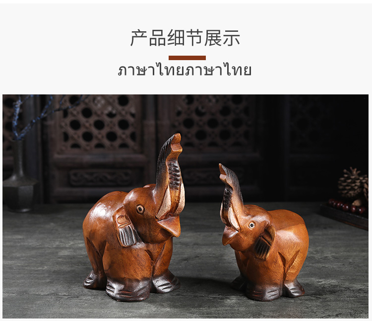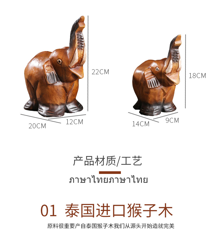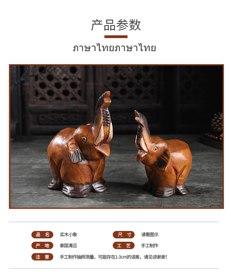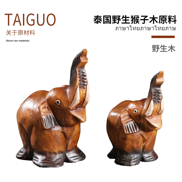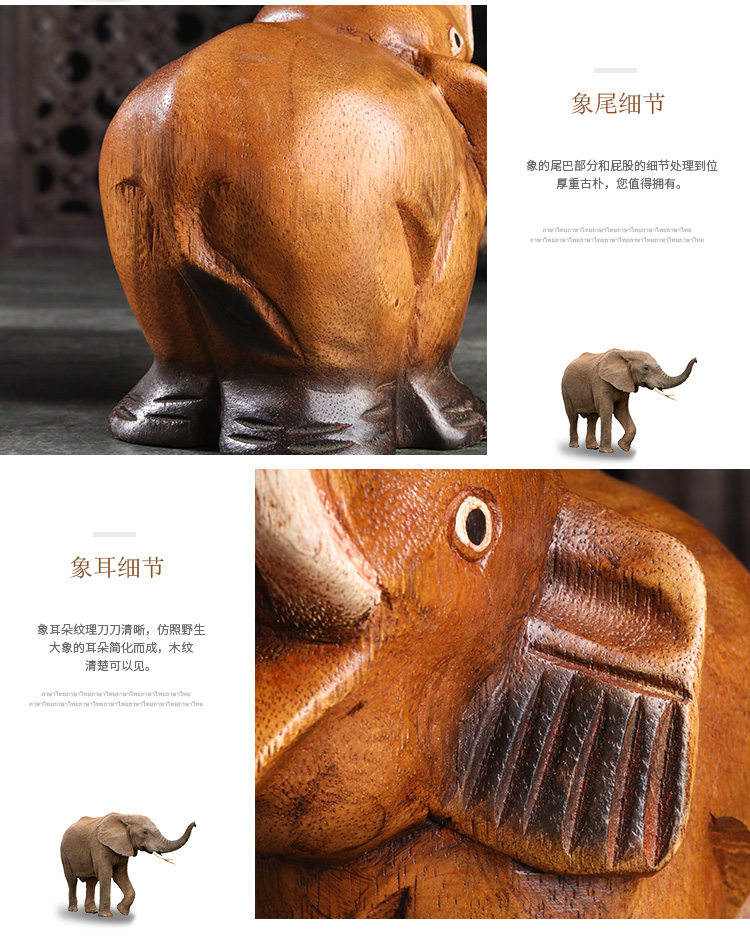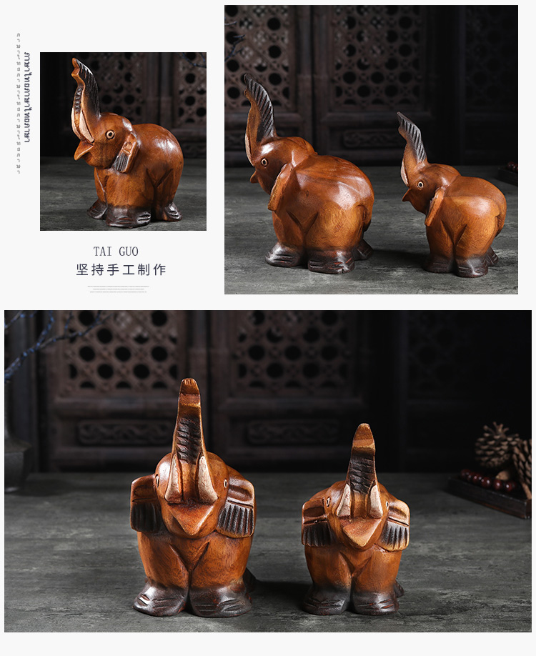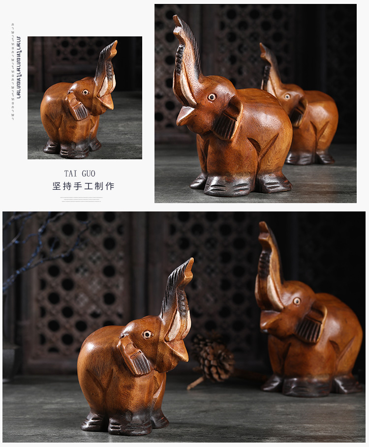 創意木頭雕刻大象擺件酒柜裝飾品擺件小動物擺件飾品家居擺件1入