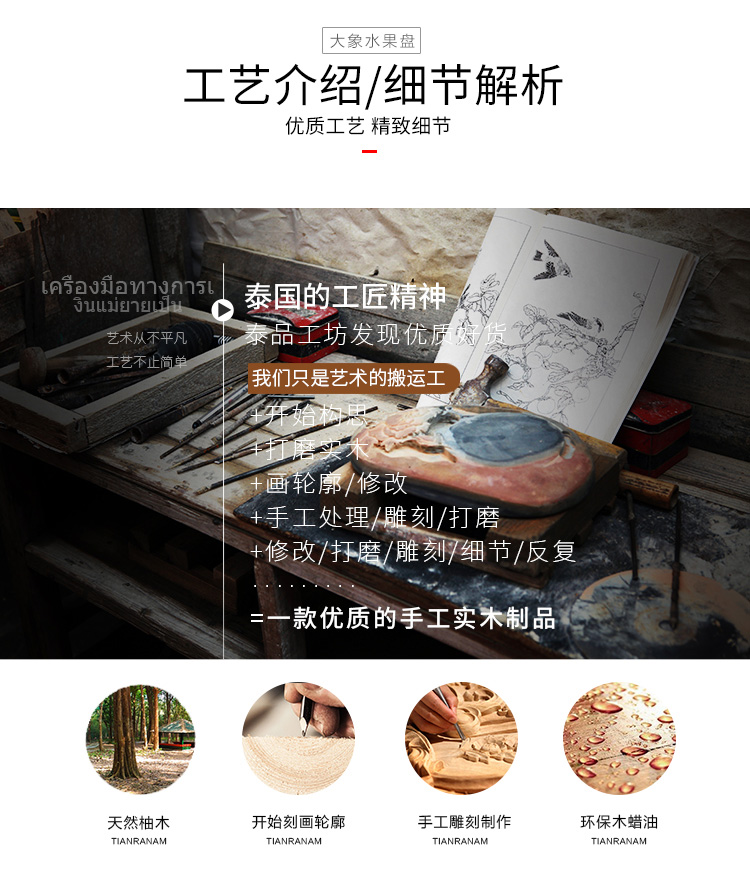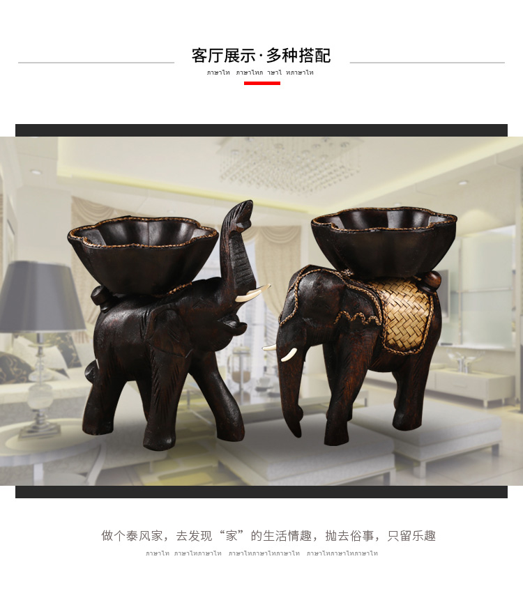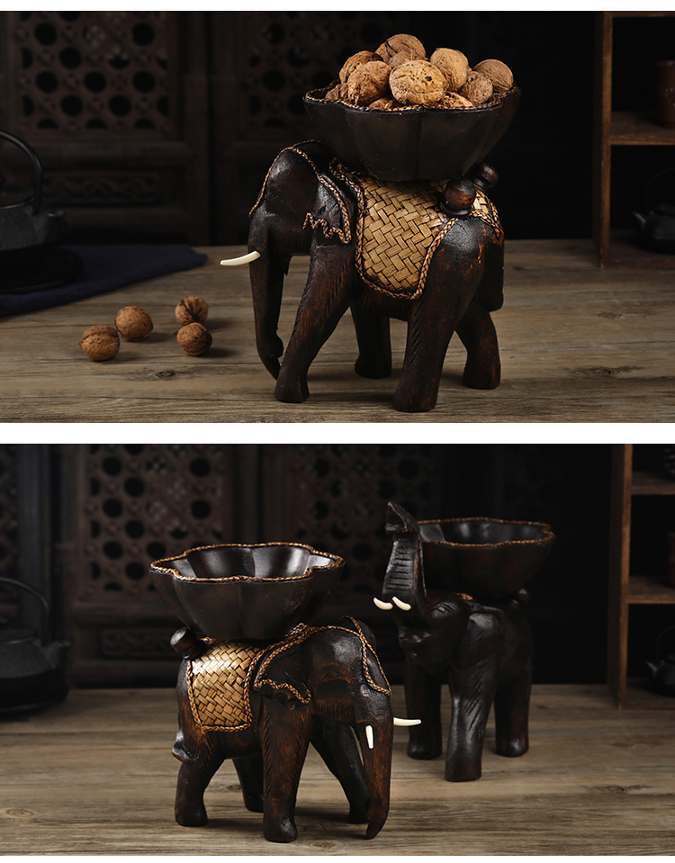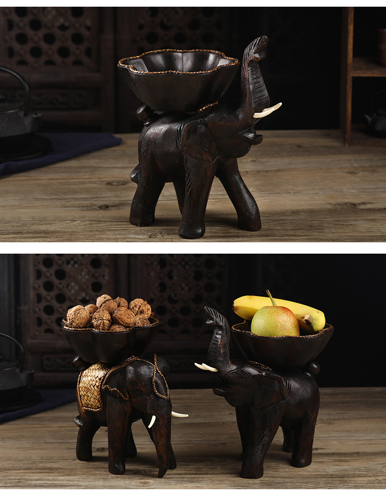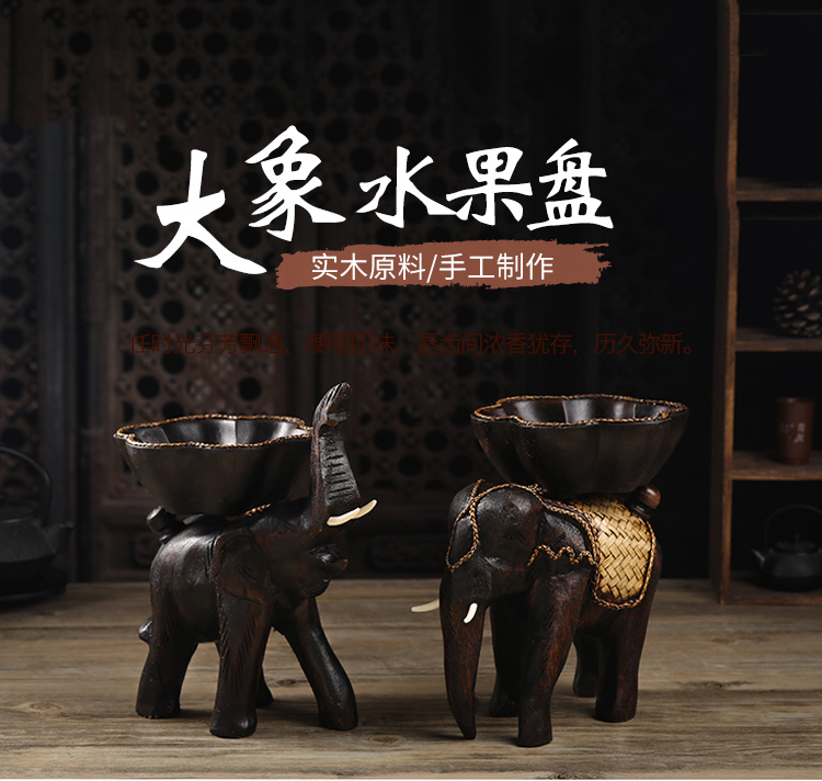 東南亞家居裝飾工藝品 客廳餐廳實木雕刻大象干果水果盤器皿1入