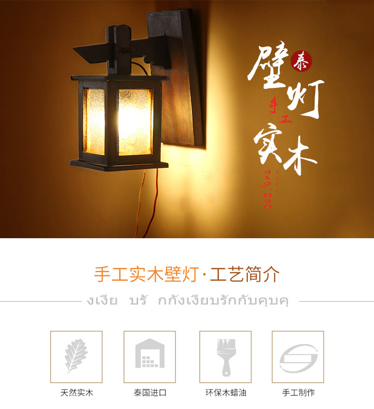 中式實木壁燈床頭臥室墻壁燈仿古客廳燈具酒店過道壁燈泰式戶外燈1入