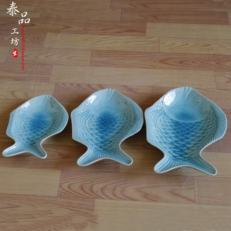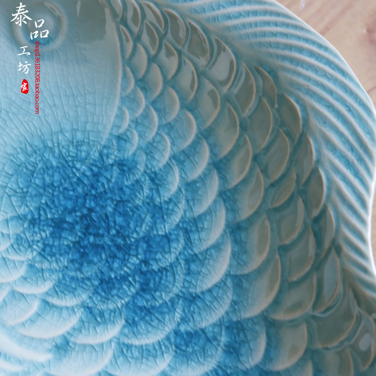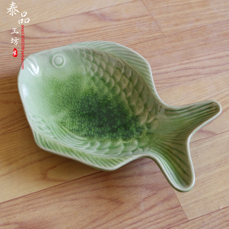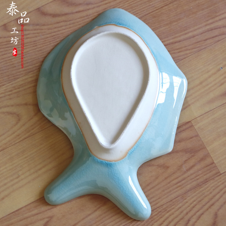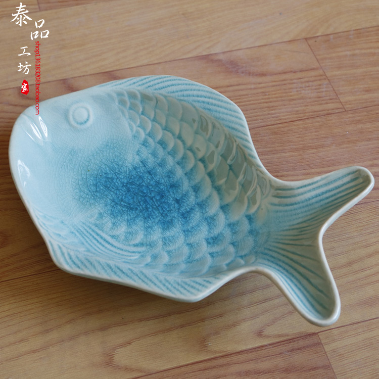 魚盤 東南亞風格陶瓷裝魚盤子酒店餐廳廚房用品裝飾菜盤1入