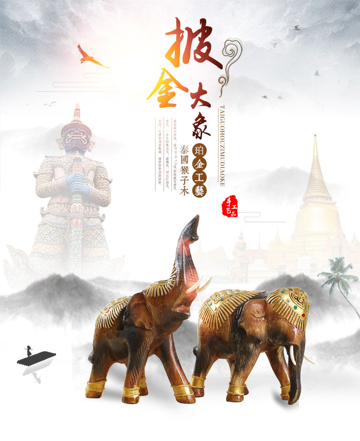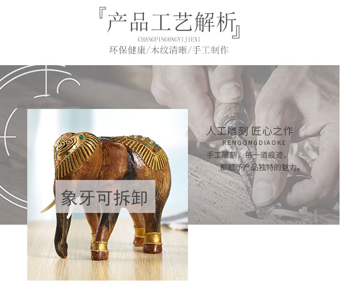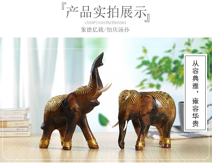 實木雕刻大象擺件東南亞客廳裝飾品工藝品木頭招財風水象禮品1入