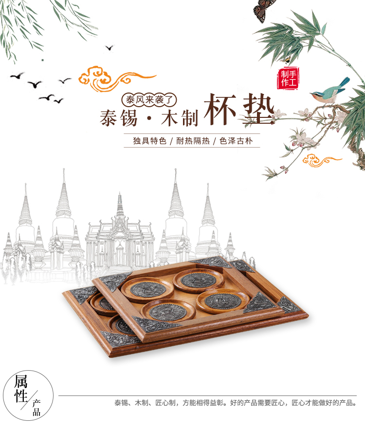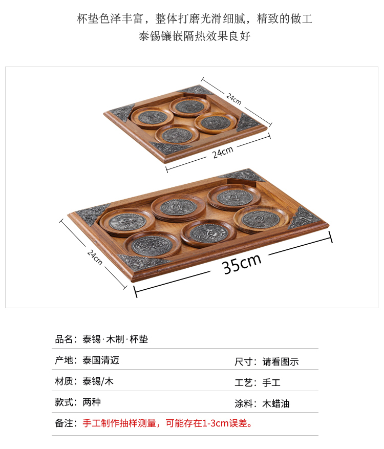特惠手工藝品東南亞實木雕刻茶具杯墊隔熱墊禮品擺件1入