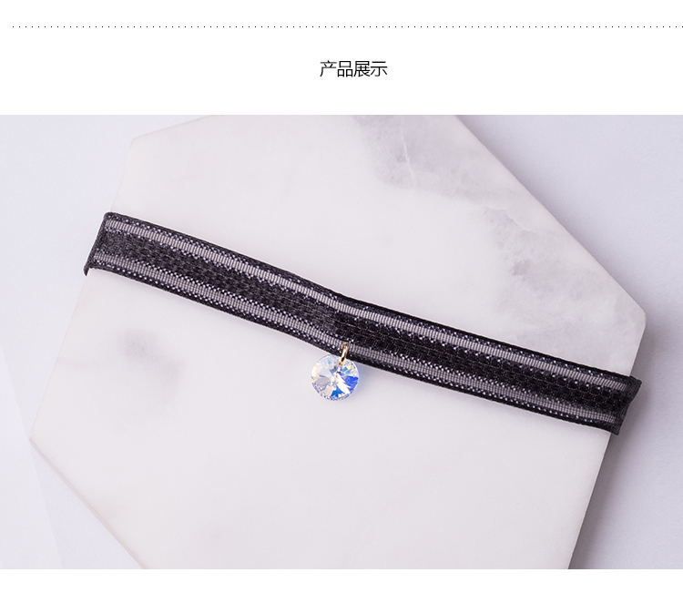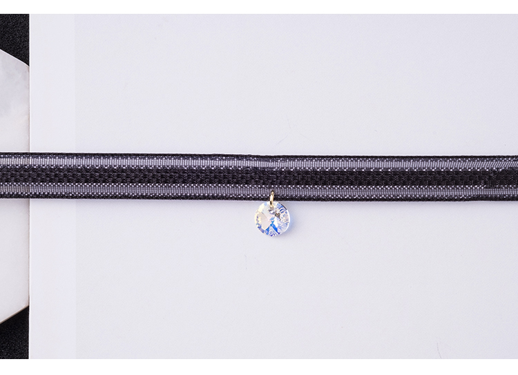[2]流行飾覺 蕾絲緞帶墜炫彩水晶choker頸鏈日韓時尚復古氣質項鏈女1入