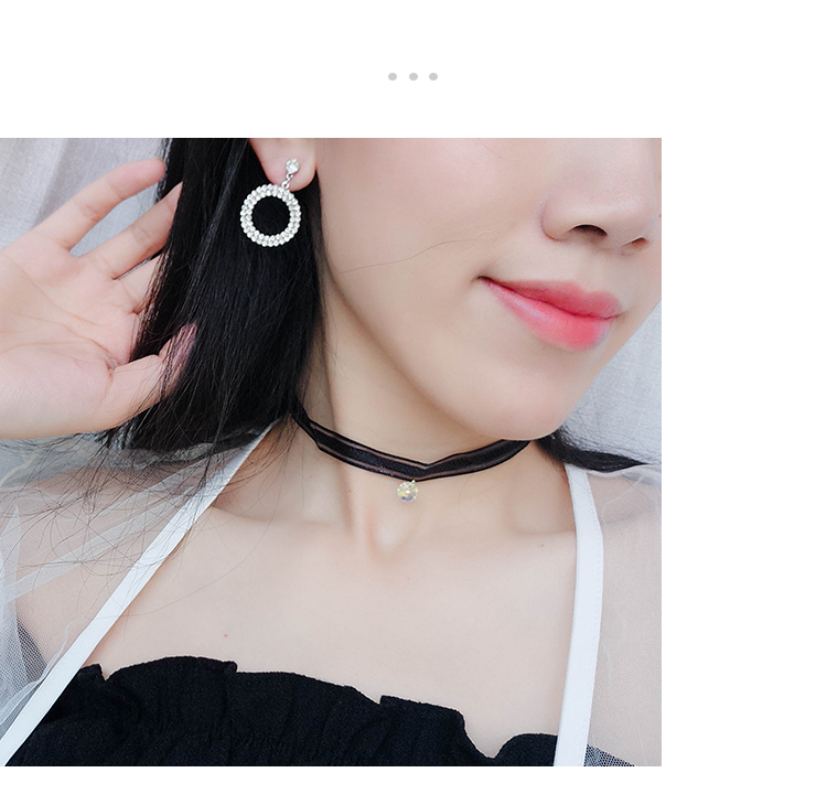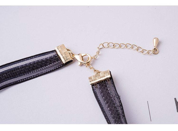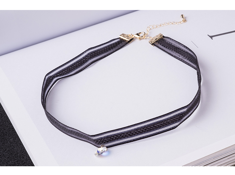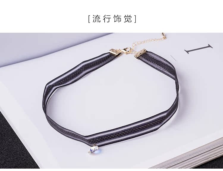 流行飾覺 蕾絲緞帶墜炫彩水晶choker頸鏈日韓時尚復古氣質項鏈女1入