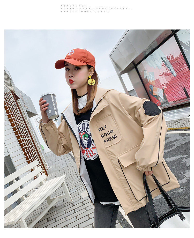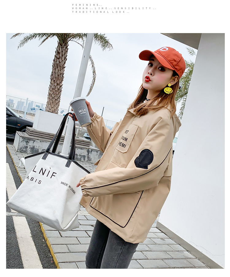 開學季外套女2019新款春秋薄款風衣韓版寬松原宿風學生棒球服秋裝1入