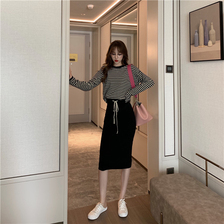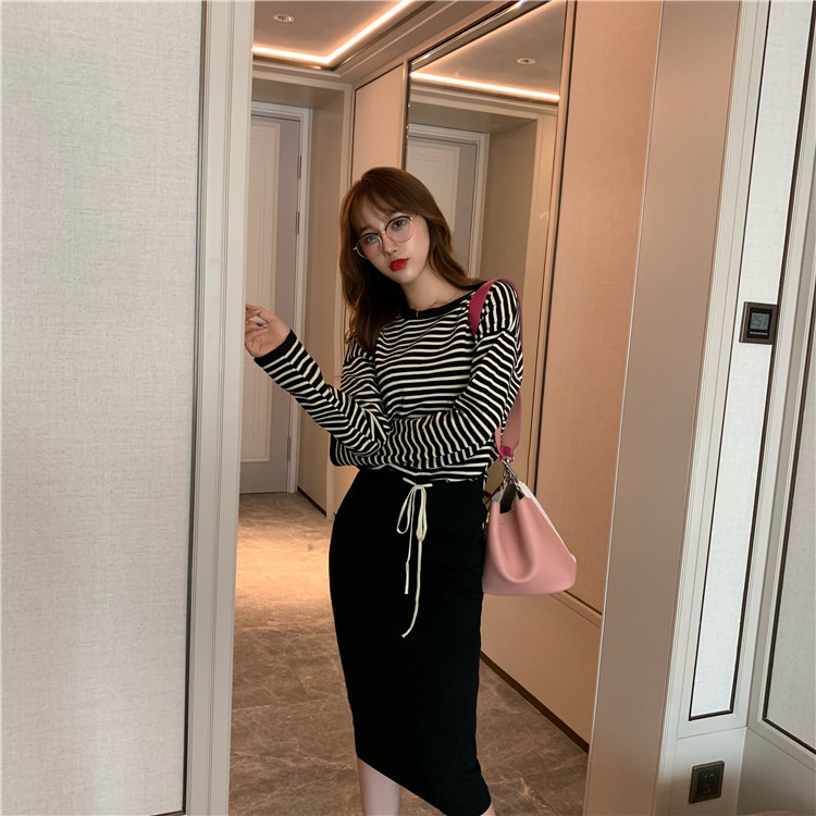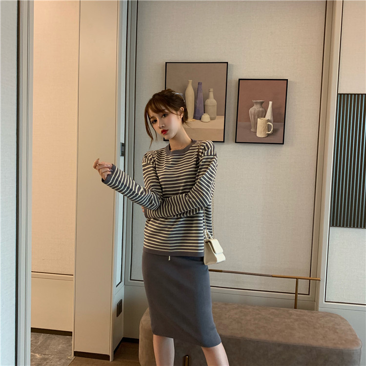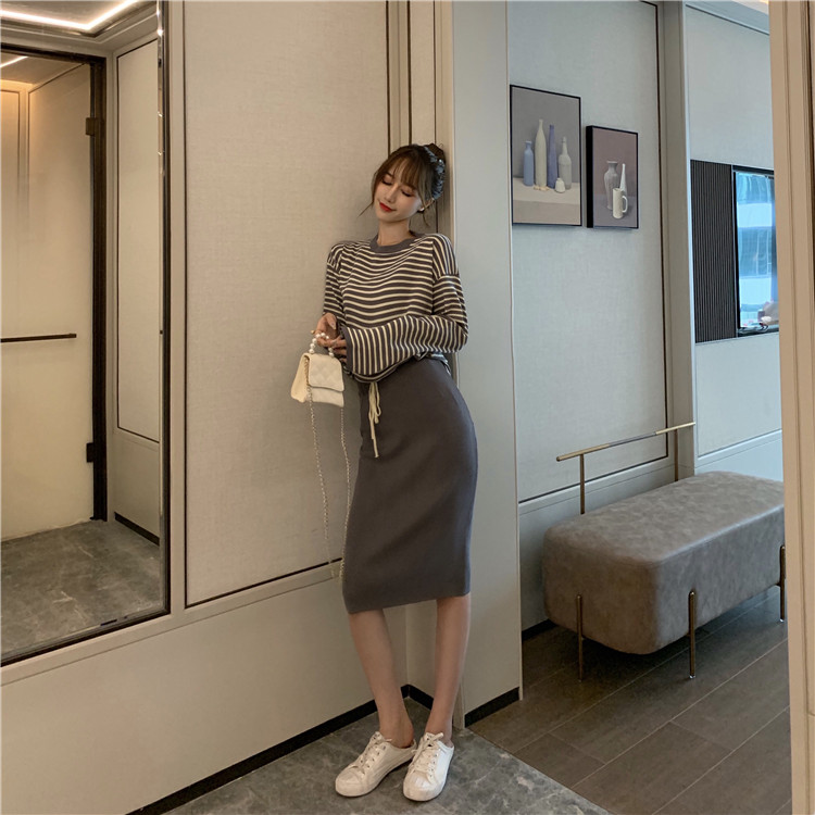 2019初秋套裝女時尚新款潮網紅氣質早秋裝針織衫半身裙顯瘦兩件套1入