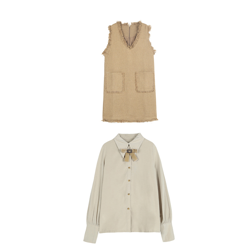 2019初秋新款女裝高冷御姐風襯衫馬甲連衣裙子秋冬兩件套裝早秋裝1入