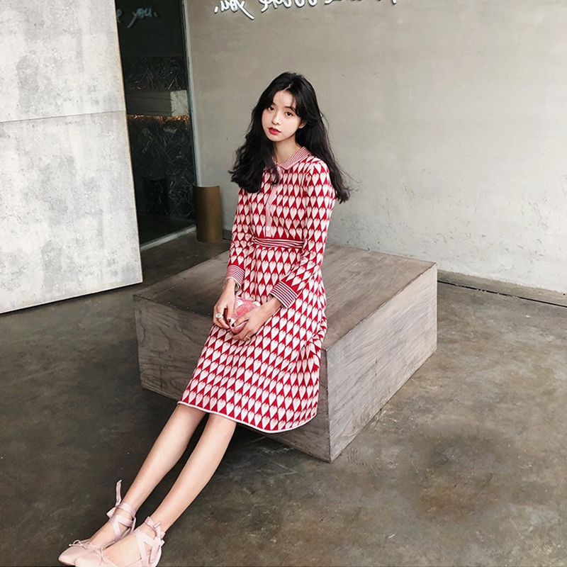 2019早秋裝新款復古長袖秋冬季御姐范打底裙子chic針織連衣裙森系1入