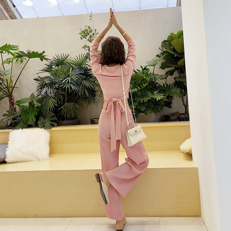 2019初秋新款森女系氣質閨蜜裝洋氣社會網紅女神闊腿褲兩件套裝女1入