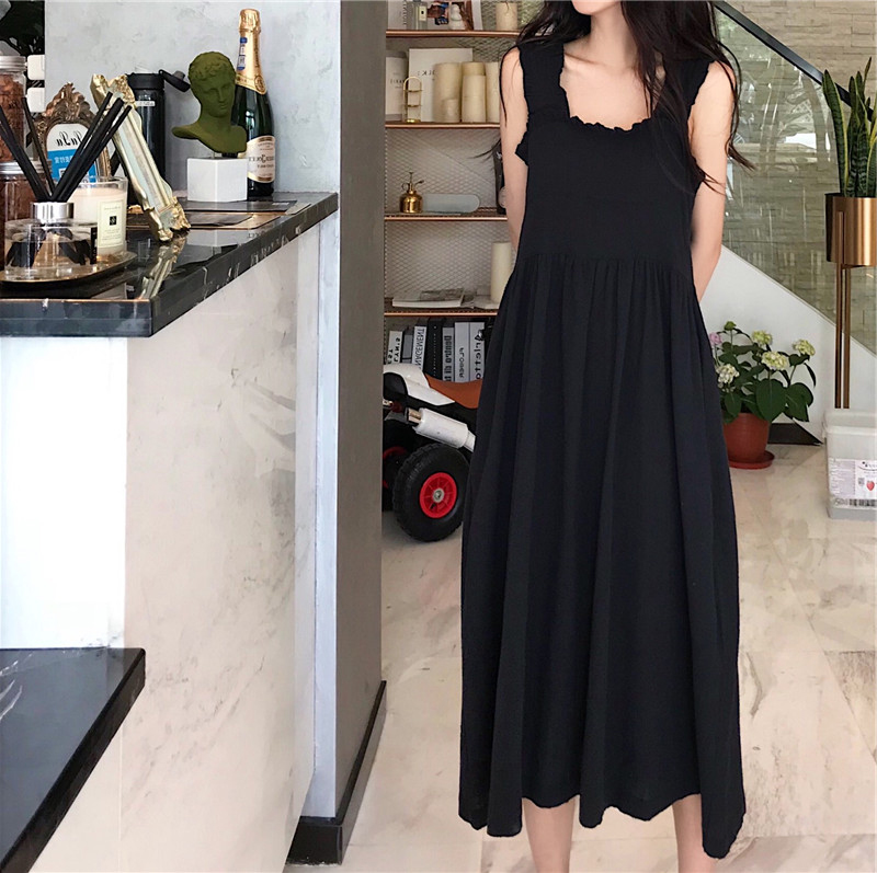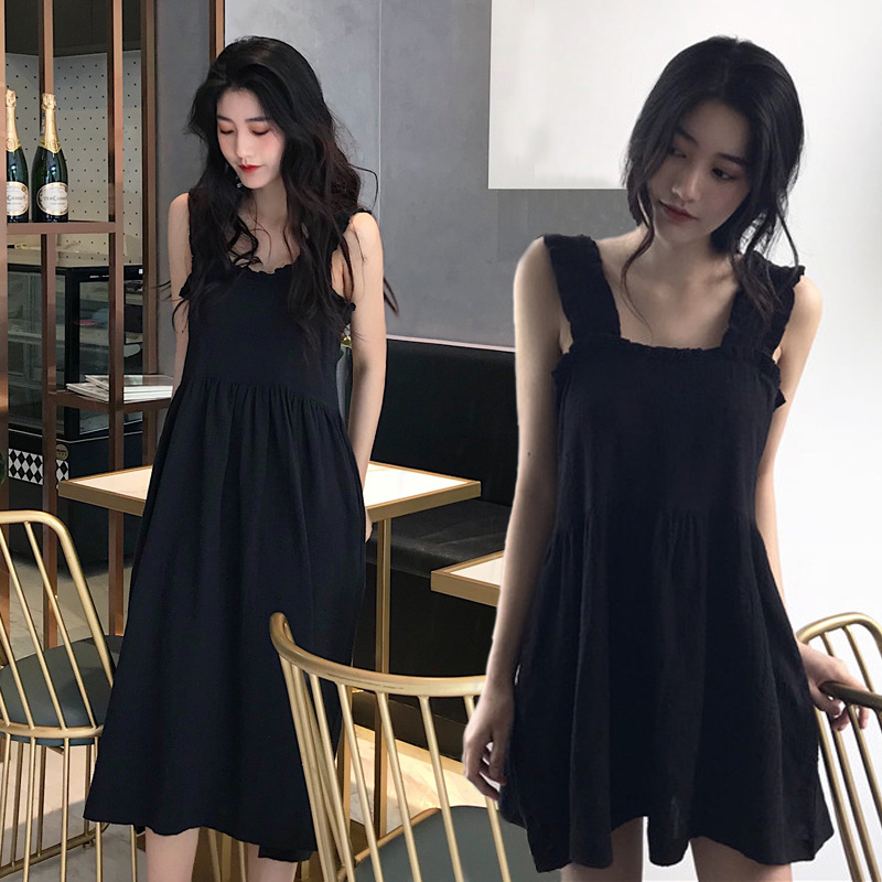 2019初秋季新款文藝小黑裙吊帶連衣裙子少女心冷淡風閨蜜女裝減齡1入
