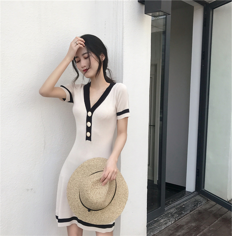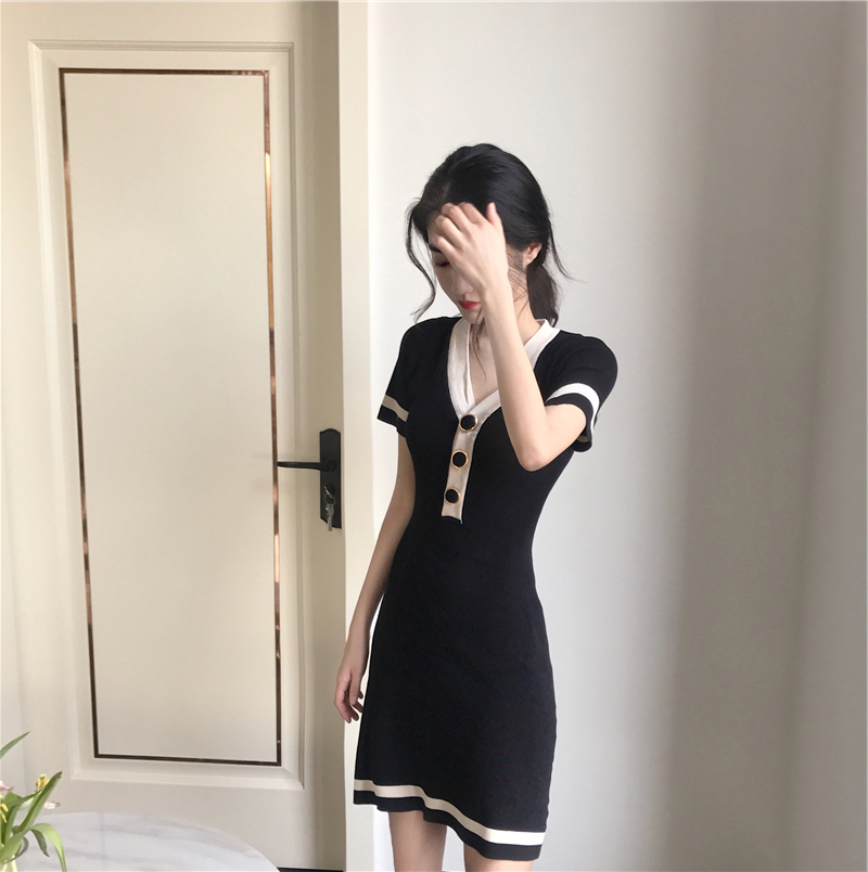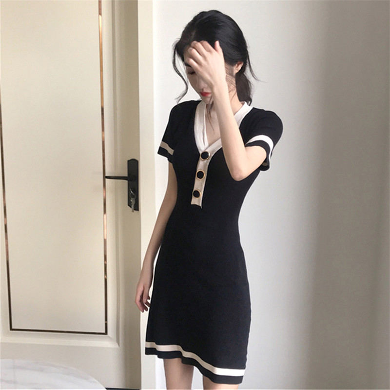 2019初秋新款矮個子chic極簡連衣裙女裙子夏季修身性感赫本小黑裙1入