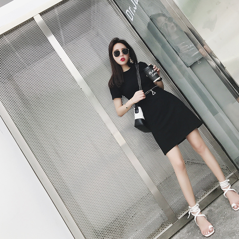 2019春秋新款女小個子森女系顯瘦黑色小清新時尚連衣裙個性初秋季1入