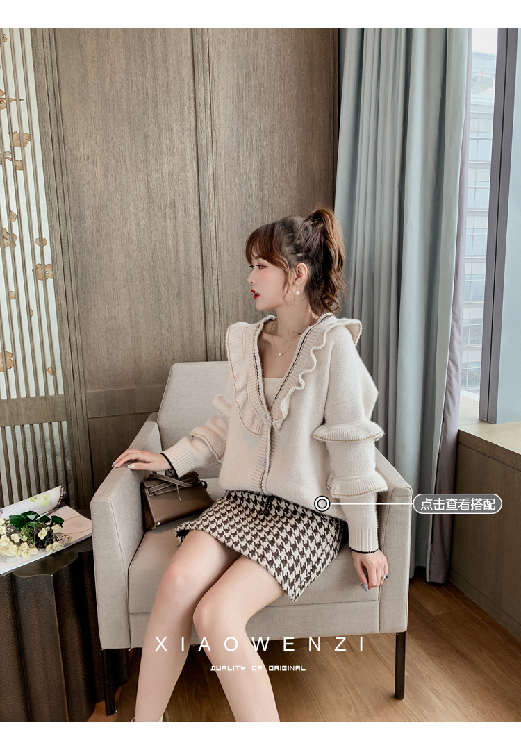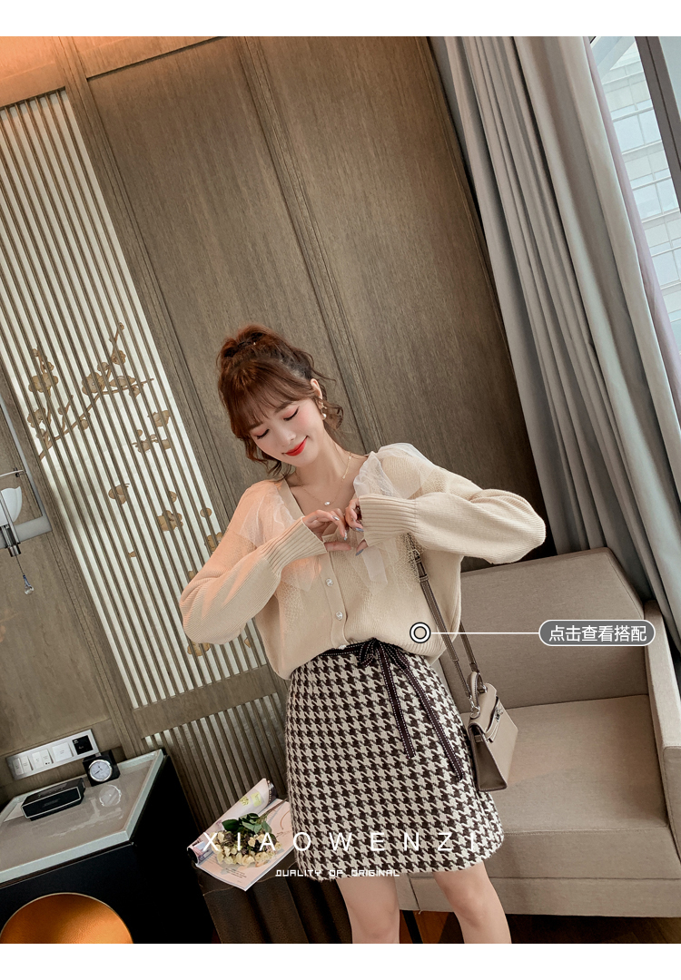 裙子女2019韓版百搭千鳥格毛呢a字裙蝴蝶結包臀半身短裙1入