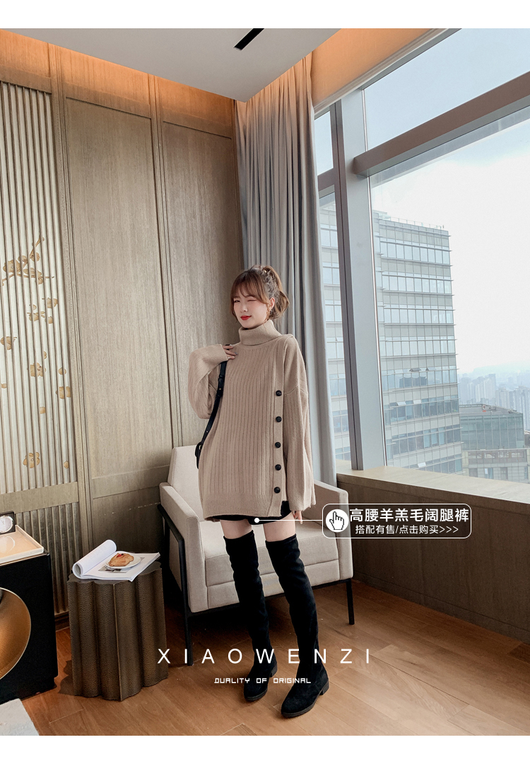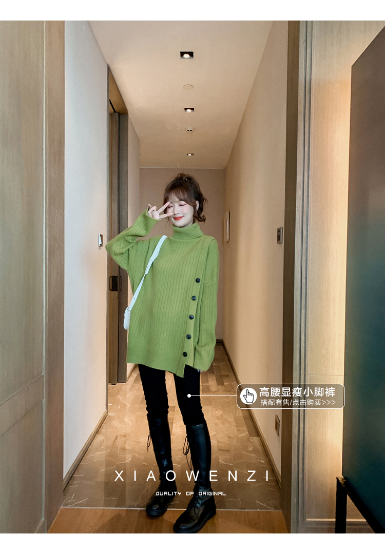 2019洋氣高領毛衣女韓版寬松慵懶中長款不規則針織衫上衣1入