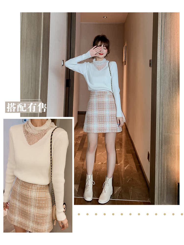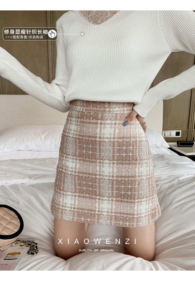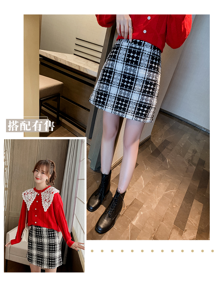 2019毛呢半身裙格子包臀短裙女氣質百搭顯瘦高腰a字裙潮1入