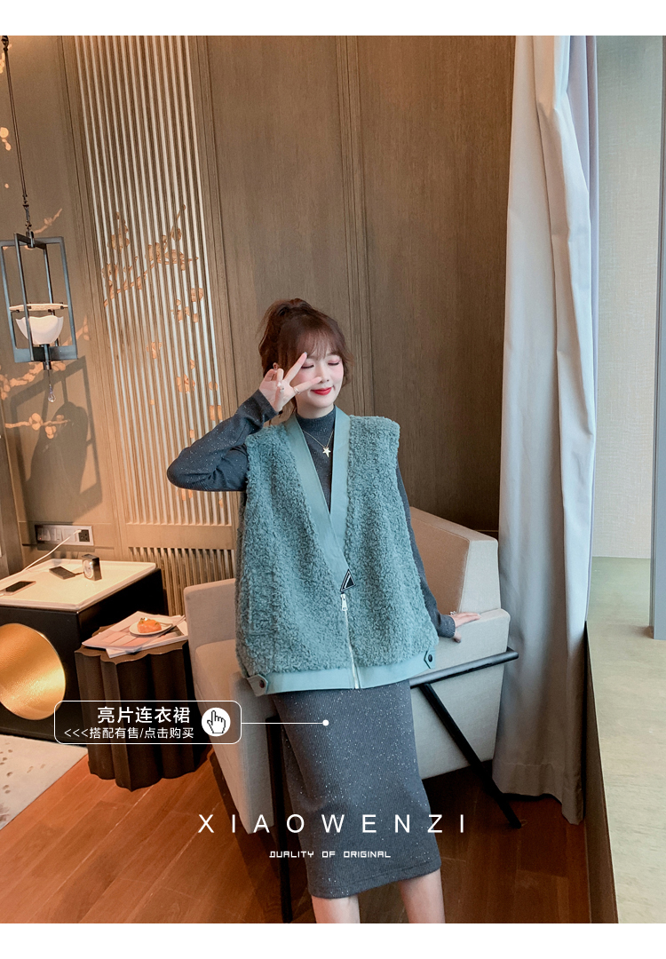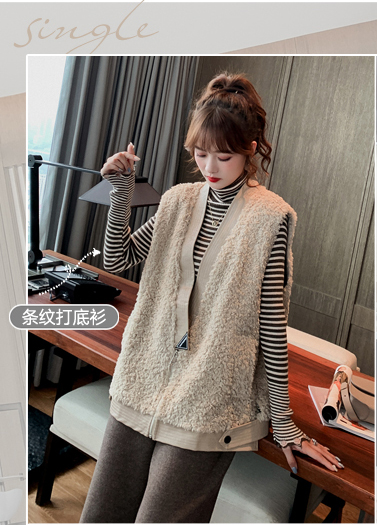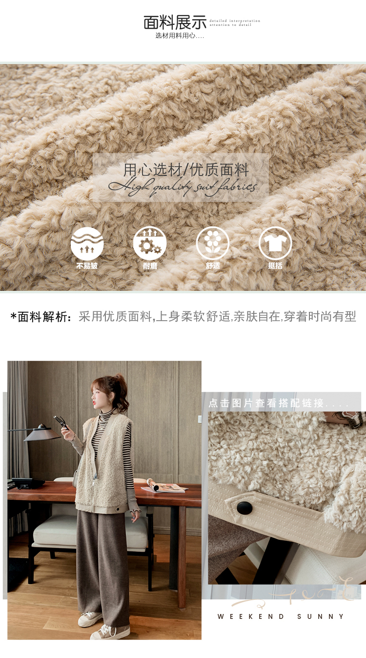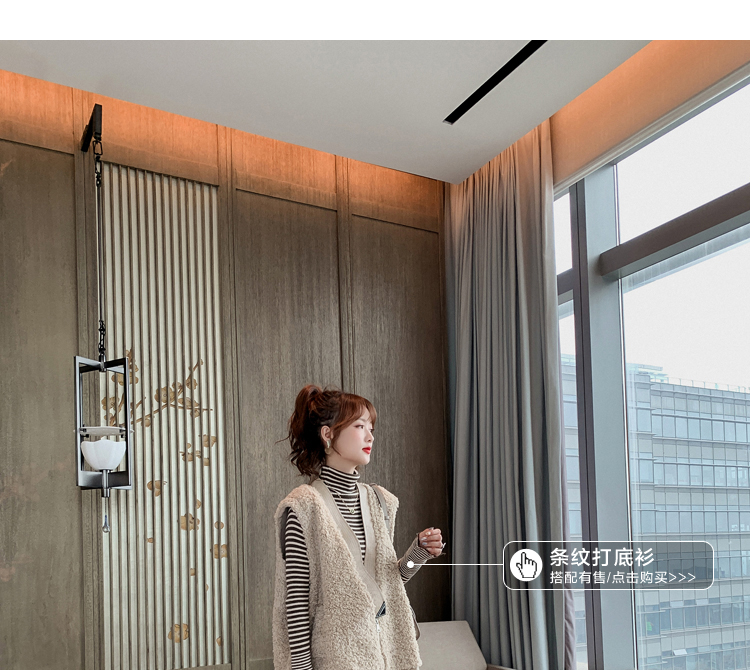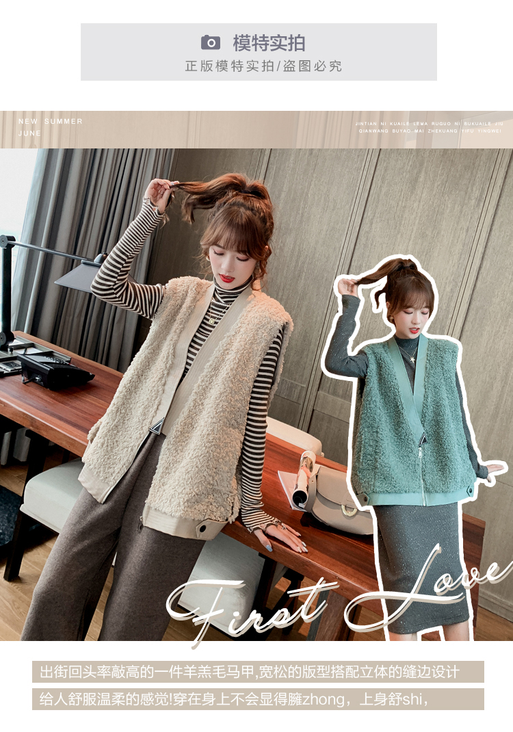 2019秋裝羊羔毛無袖馬甲上衣女韓版寬松百搭皮毛一體馬夾外套1入