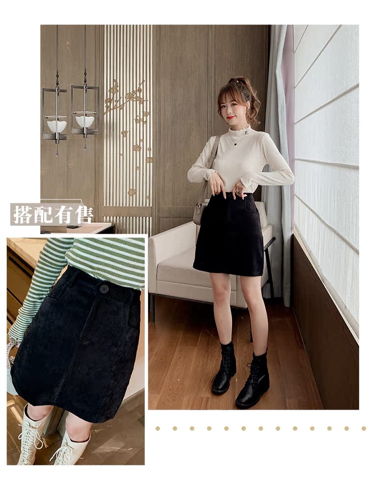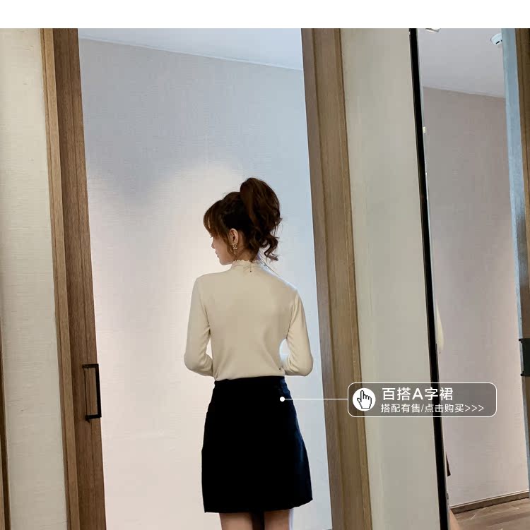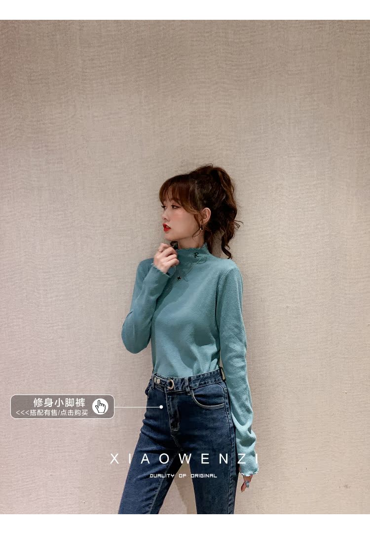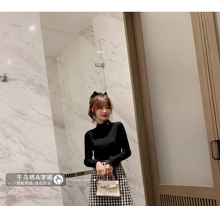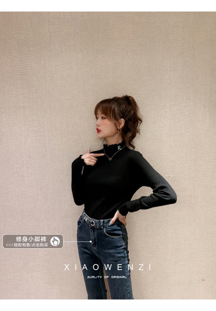 2019秋裝半高領字母長袖t恤上衣女休閑百搭修身針織打底衫潮1入