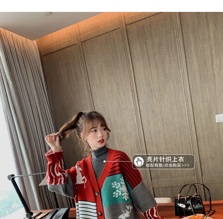 2019秋裝韓版寬松慵懶針織開衫上衣女復古顯瘦百搭毛衣外套潮1入
