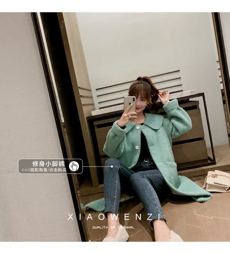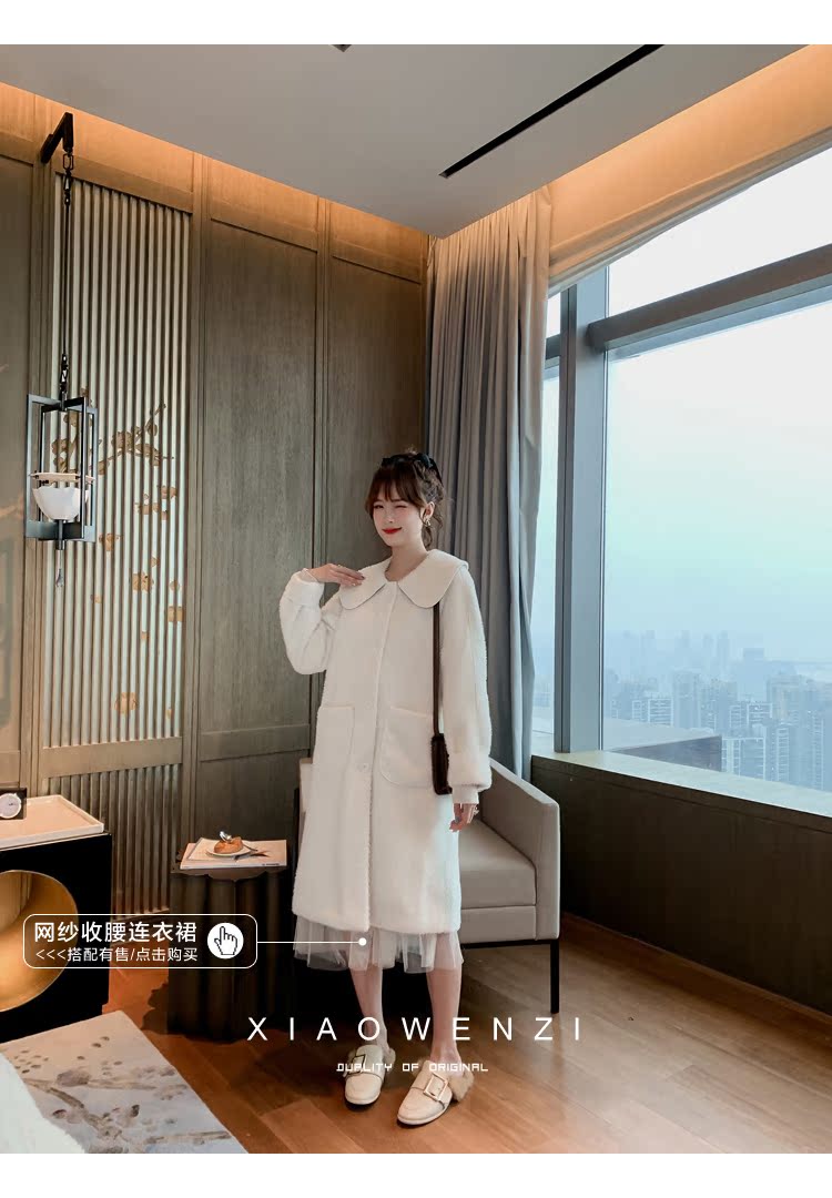 2019韓版寬松皮毛一體毛呢外套女中長款過膝仿水貂絨大衣1入