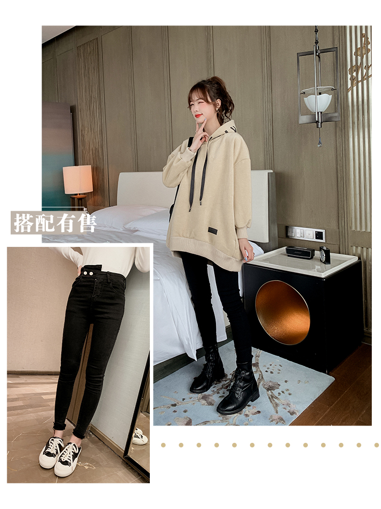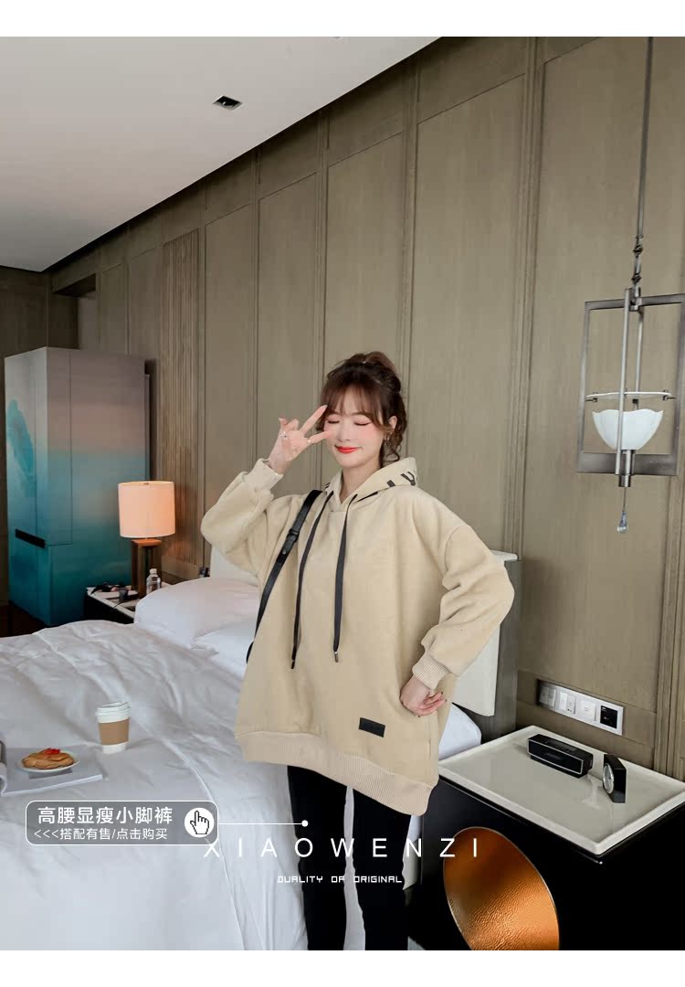 2019慵懶休閑中長款毛呢外套上衣女韓版寬松套頭連帽衛衣1入