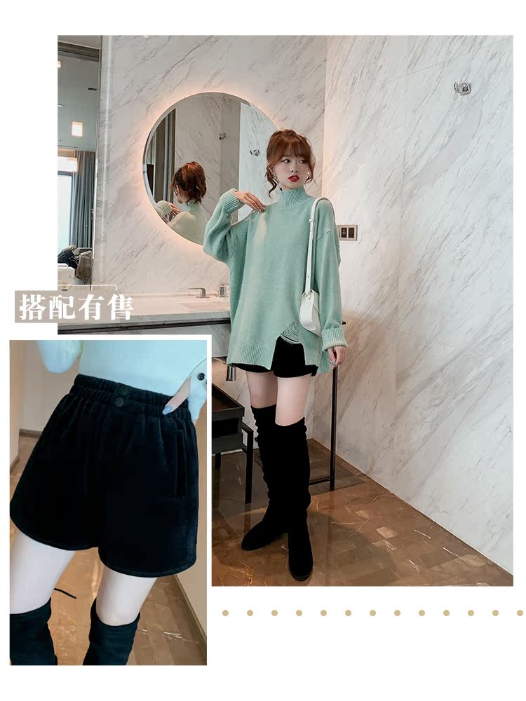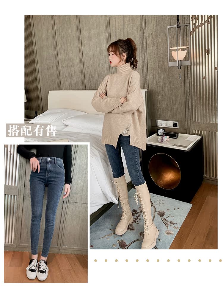 2019女慵懶寬松不規則中長款套頭毛衣女韓版時尚長袖上衣1入