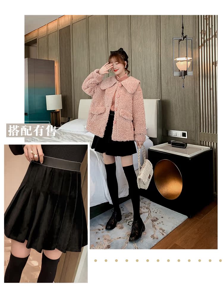 2019冬季短款皮毛一體羊羔毛大衣女韓版寬松大翻領外套上衣潮1入