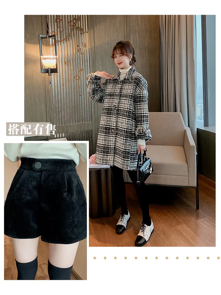 2019冬季復古時尚格子粗花呢外套女韓版寬松中長款呢子大衣潮1入