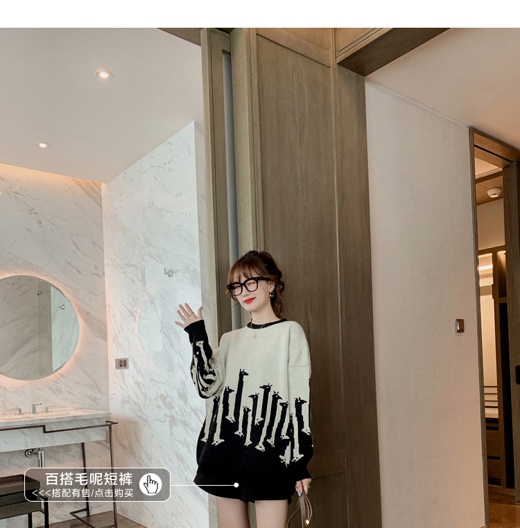 2019秋裝韓版慵懶寬松套頭毛衣女外穿網紅洋氣長袖針織衫上衣1入